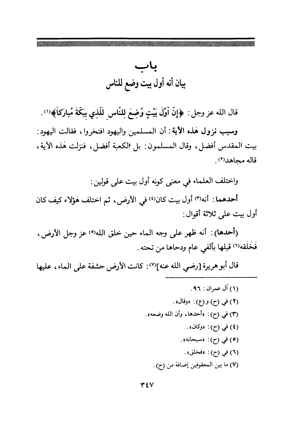 باب بيان أنه أَوَّلُ بَيْتٍ وُضِعَ لِلنَّاسِ