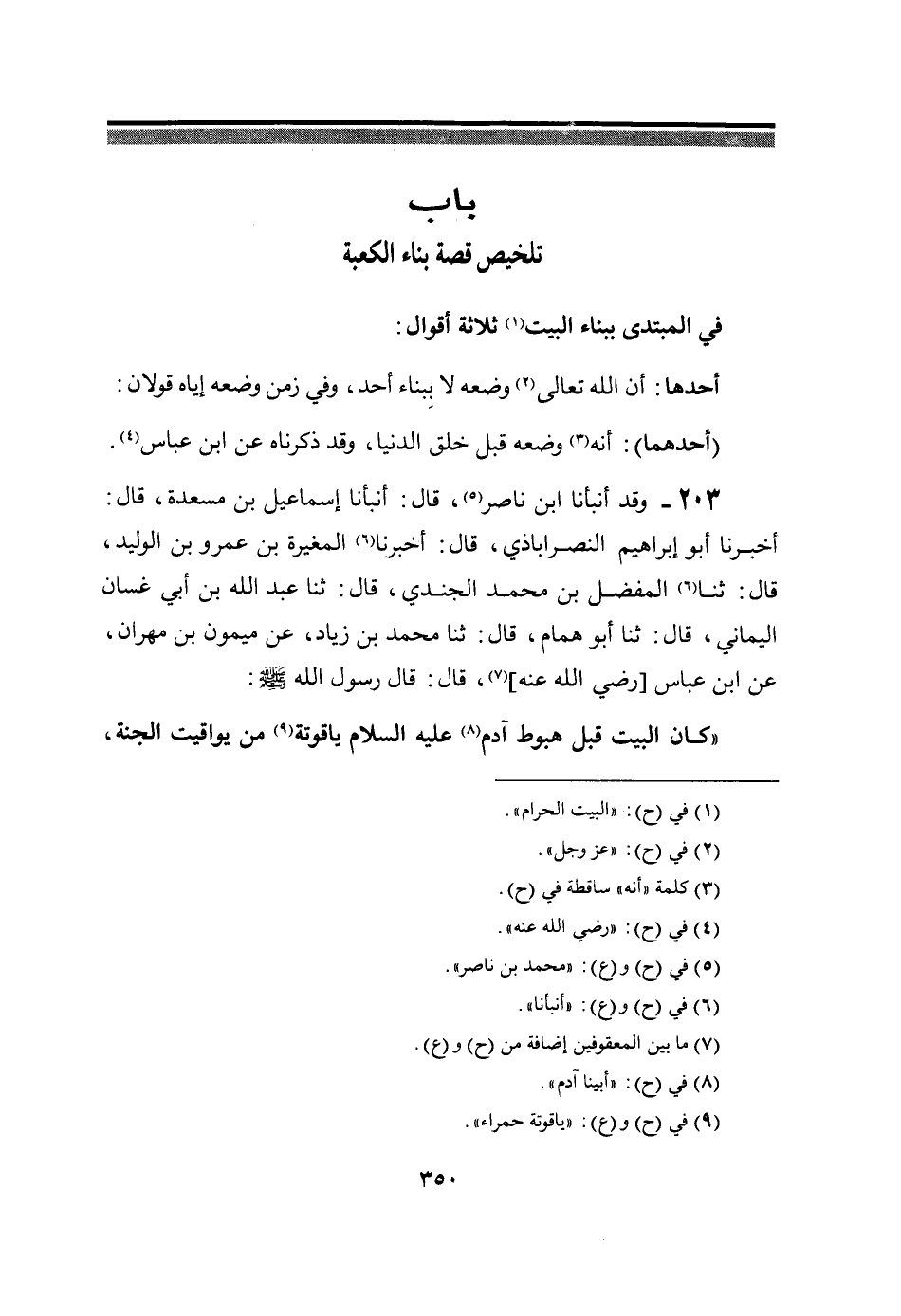 ((كَانَ الْبَيْتُ قَبْلَ هُبُوطِ آدَمَ عَلَيْهِ السَّلامُ يَاقُوَتَةً مِنْ يَوَاقِيتِ الجنة