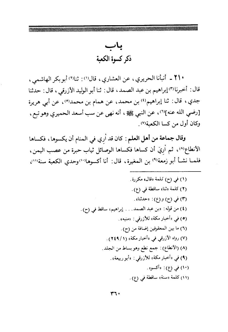 210- أَنْبَأنَا الْحَرِيرِيُّ، عَنِ العشاري، قال: ثنا أبو بكر الهاشمي، قال: أخبرنا إبراهيم بن عبد الصمد، قال: ثنا أبو الوليد الأزرقي، قال: حدثنا جدي، قال: ثنا إبراهيم بن محمد، عن همام بن محمد، عَنْ أَبِي هُرَيْرَةَ [رَضِيَ اللَّهُ عَنْهُ] ، عَنِ النَّبِيِّ صَلَّى اللَّهُ عَلَيْهِ وَسَلَّمَ، أَنَّهُ نَهَى عَنْ سَبِّ أَسْعَدَ الْحِمْيَرِيِّ وَهُوَ تُبَّعٌ، وَكَانَ أول من كسا الكعبة.