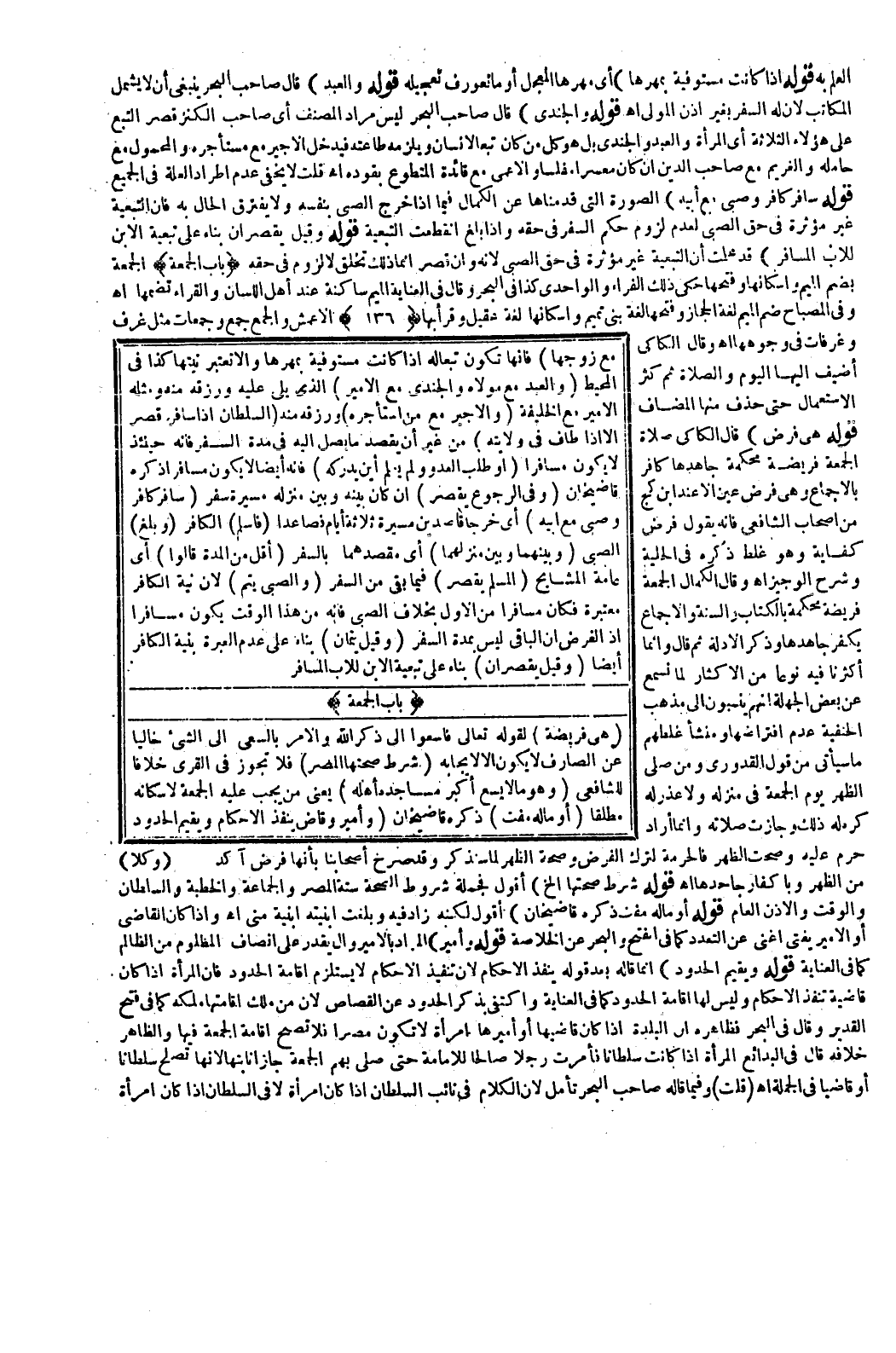 وَقَالَ الْكَمَالُ الْجُمُعَةُ فَرِيضَةٌ مُحْكَمَةٌ بِالْكِتَابِ وَالسُّنَّةِ وَالْإِجْمَاعِ يَكْفُرُ جَاحِدُهَا، وَذَكَرَ الْأَدِلَّةَ ثُمَّ قَالَ، وَإِنَّمَا أَكْثَرْنَا فِيهِ نَوْعًا مِنْ الْإِكْثَارِ لِمَا نَسْمَعُ عَنْ بَعْضِ الْجَهَلَةِ أَنَّهُمْ يُنْسِبُونَ إلَى مَذْهَبِ الْحَنَفِيَّةِ عَدَمَ افْتِرَاضِهَا وَمُنْشَأُ غَلَطِهِمْ مَا سَيَأْتِي مِنْ قَوْلِ الْقُدُورِيِّ وَمَنْ صَلَّى الظُّهْرَ يَوْمَ الْجُمُعَةِ فِي مَنْزِلِهِ وَلَا عُذْرَ لَهُ كُرِهَ لَهُ ذَلِكَ وَجَازَتْ صَلَاتُهُ، وَإِنَّمَا أَرَادَ حَرُمَ عَلَيْهِ وَصَحَّتْ الظُّهْرُ فَالْحُرْمَةُ لِتَرْكِ الْفَرْضِ وَصِحَّةُ الظُّهْرِ لِمَا سَنَذْكُرُ، وَقَدْ صَرَّحَ أَصْحَابُنَا بِأَنَّهَا فَرْضٌ آكَدُ مِنْ الظُّهْرِ وَبِإِكْفَارِ جَاحِدِهَا. اهـ.