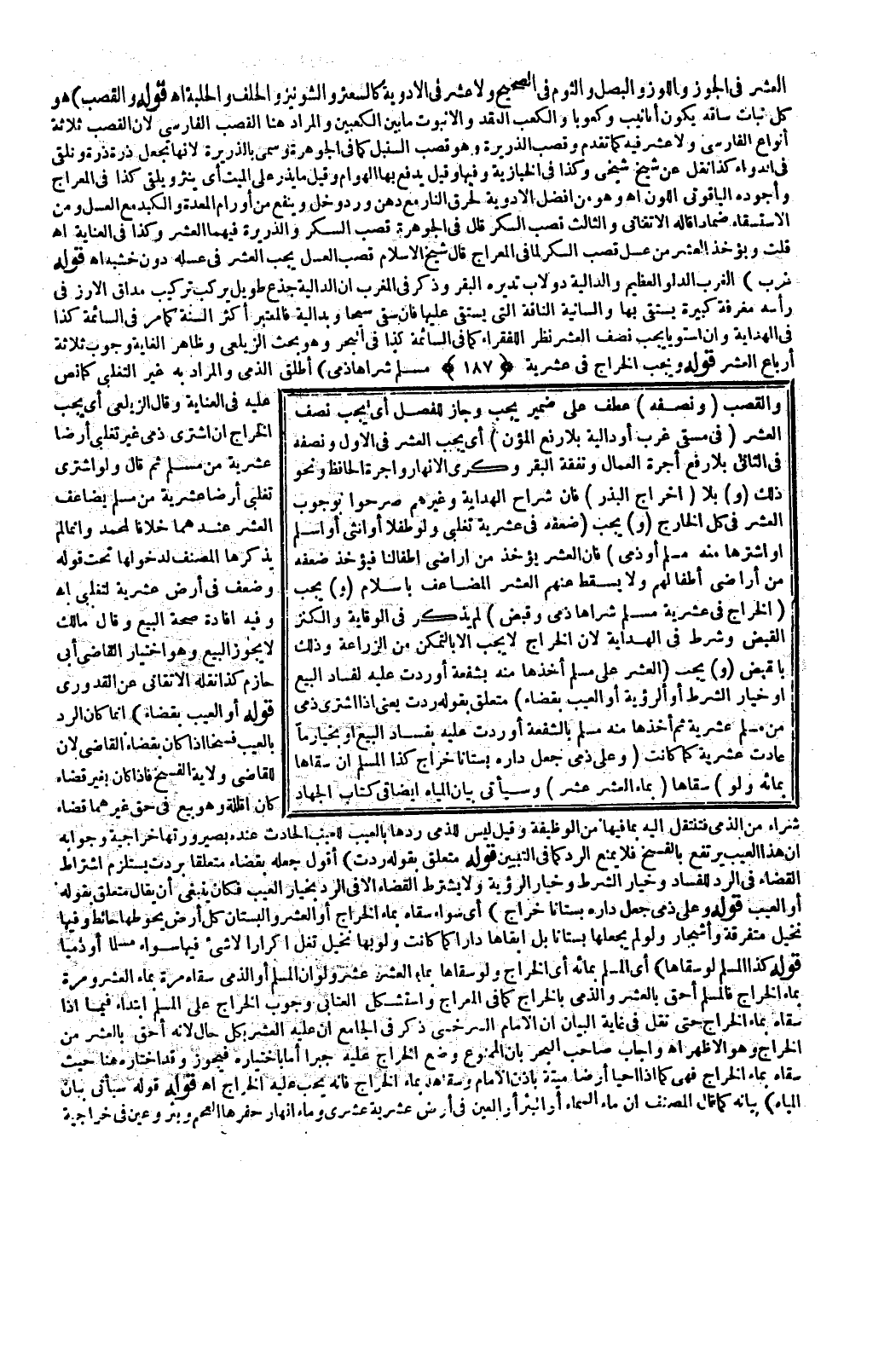 (قَوْلُهُ: وَيَجِبُ الْخَرَاجُ فِي عُشْرِيَّةِ مُسْلِمٍ شَرَاهَا ذِمِّيٌّ) أَطْلَقَ الذِّمِّيَّ وَالْمُرَادُ بِهِ غَيْرُ التَّغْلِبِيِّ كَمَا نَصَّ عَلَيْهِ فِي الْعِنَايَةِ وَقَالَ الزَّيْلَعِيُّ أَيْ يَجِبُ الْخَرَاجُ إنْ اشْتَرَى ذِمِّيٌّ غَيْرُ تَغْلِبِيٍّ أَرْضًا عُشْرِيَّةً مِنْ مُسْلِمٍ ثُمَّ قَالَ: وَلَوْ اشْتَرَى تَغْلِبِيٌّ أَرْضًا عُشْرِيَّةً مِنْ مُسْلِمٍ يُضَاعَفُ الْعُشْرُ عِنْدَهُمَا خِلَافًا لِمُحَمَّدٍ، وَإِنَّمَا لَمْ يَذْكُرْهَا الْمُصَنِّفُ لِدُخُولِهَا تَحْتَ قَوْلِهِ وَضُعِّفَ فِي أَرْضٍ عُشْرِيَّةٍ لِتَغْلِبِيٍّ. اهـ.