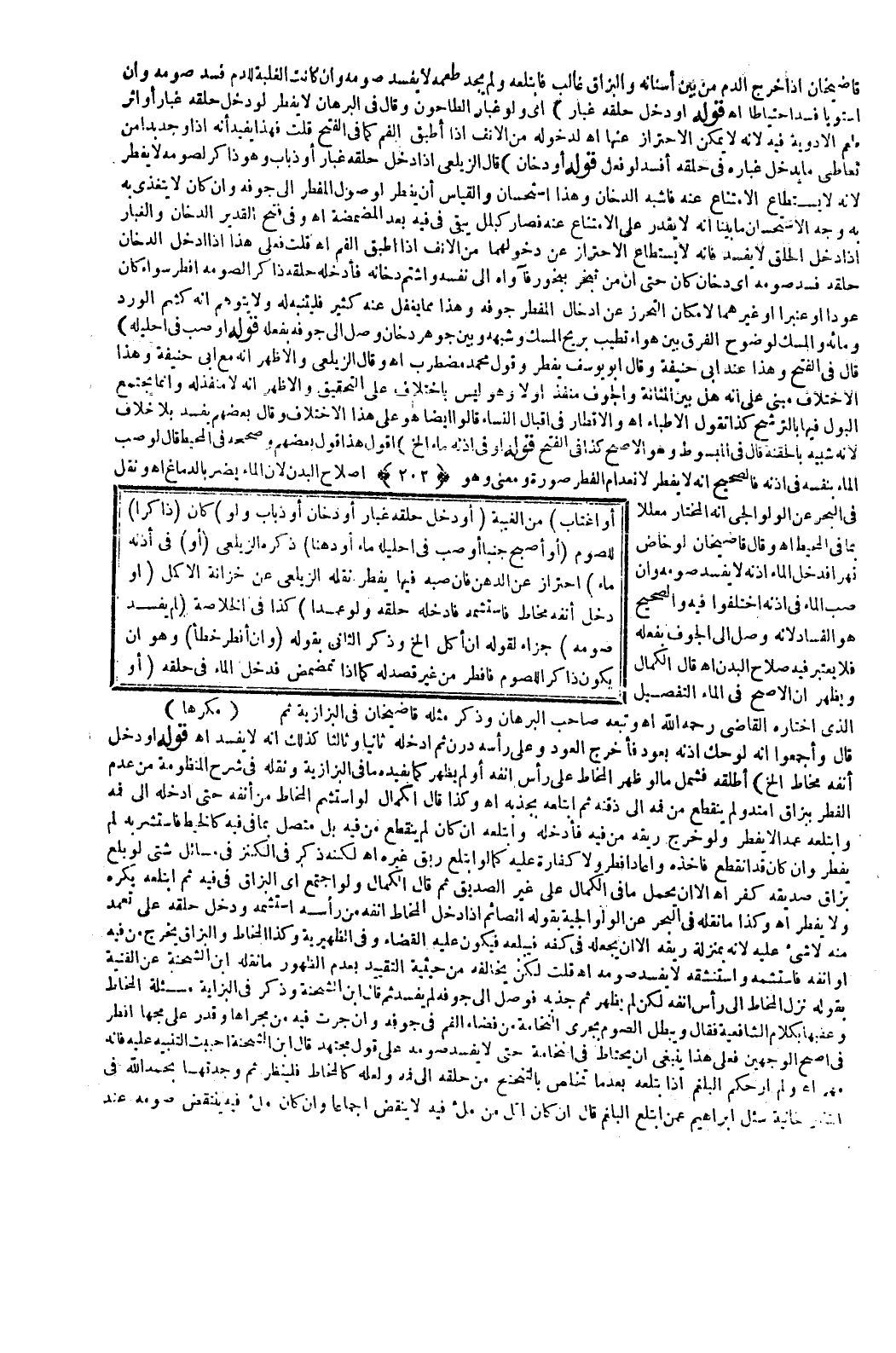 وَقَالَ الزَّيْلَعِيُّ وَالْأَظْهَرُ أَنَّهُ مَعَ أَبِي حَنِيفَةَ، وَهَذَا الِاخْتِلَافُ مَبْنِيٌّ عَلَى أَنَّهُ هَلْ بَيْنَ الْمَثَانَةِ وَالْجَوْفِ مَنْفَذُ أَوْ لَا؟ وَهُوَ لَيْسَ بِاخْتِلَافٍ عَلَى التَّحْقِيقِ وَالْأَظْهَرُ أَنَّهُ لَا مَنْفَذَ لَهُ، وَإِنَّمَا يَجْتَمِعُ الْبَوْلُ فِيهَا بِالتَّرَشُّحِ كَذَا تَقُولُ الْأَطِبَّاءُ. اهـ. وَالْإِقْطَارُ فِي أَقْبَالِ النِّسَاءِ قَالُوا أَيْضًا هُوَ عَلَى هَذَا الِاخْتِلَافِ.