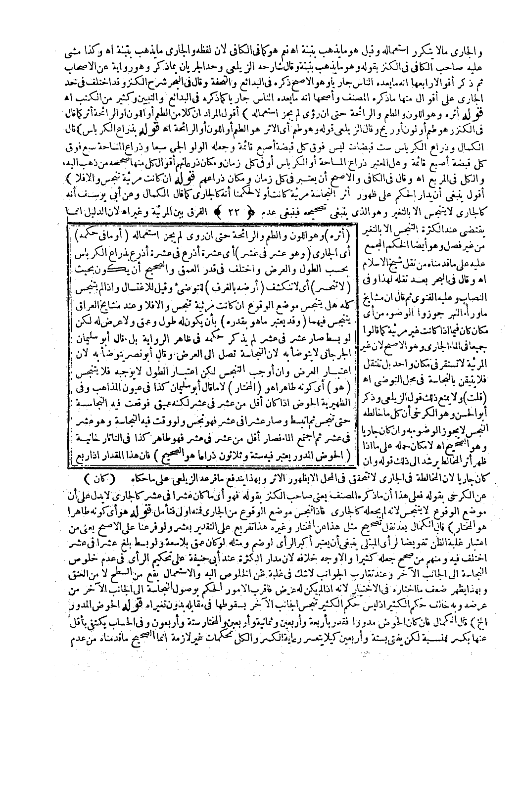 وَقَالَ شَارِحُهُ الزَّيْلَعِيُّ: وَحَدَّ الْجَرَيَانَ بِمَا ذَكَرَ وَهُوَ رِوَايَةٌ عَنْ الْأَصْحَابِ ثُمَّ ذَكَرَ أَقْوَالًا رَابِعُهَا أَنَّهُ مَا يَعُدُّهُ النَّاسُ جَارِيًا وَهُوَ الْأَصَحُّ ذَكَرَهُ فِي الْبَدَائِعِ، وَالتُّحْفَةِ وَقَالَ فِي الْبَحْرِ شَرْحِ الْكَنْزِ وَقَدْ اُخْتُلِفَ فِي حَدِّ الْجَارِي عَلَى أَقْوَالٍ مِنْهَا مَا ذَكَرَهُ الْمُصَنِّفُ وَاضِحُهَا أَنَّهُ مَا يَعُدُّهُ النَّاسُ جَارِيًا كَمَا ذَكَرَهُ فِي الْبَدَائِعِ، وَالتَّبْيِينِ وَكَثِيرٍ مِنْ الْكُتُبِ اهـ.