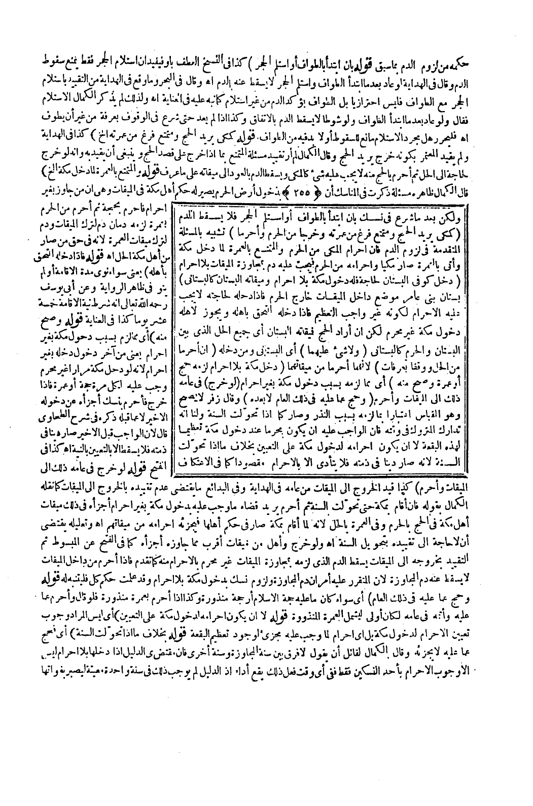 وَقَالَ فِي الْبَحْرِ وَمَا وَقَعَ فِي الْهِدَايَةِ مِنْ التَّقْيِيدِ بِاسْتِلَامِ الْحَجَرِ مَعَ الطَّوَافِ فَلَيْسَ احْتِرَازِيًّا، بَلْ الطَّوَافُ يُؤَكِّدُ الدَّمَ مِنْ غَيْرِ اسْتِلَامٍ كَمَا نَبَّهَ عَلَيْهِ فِي الْعِنَايَةِ اهـ.