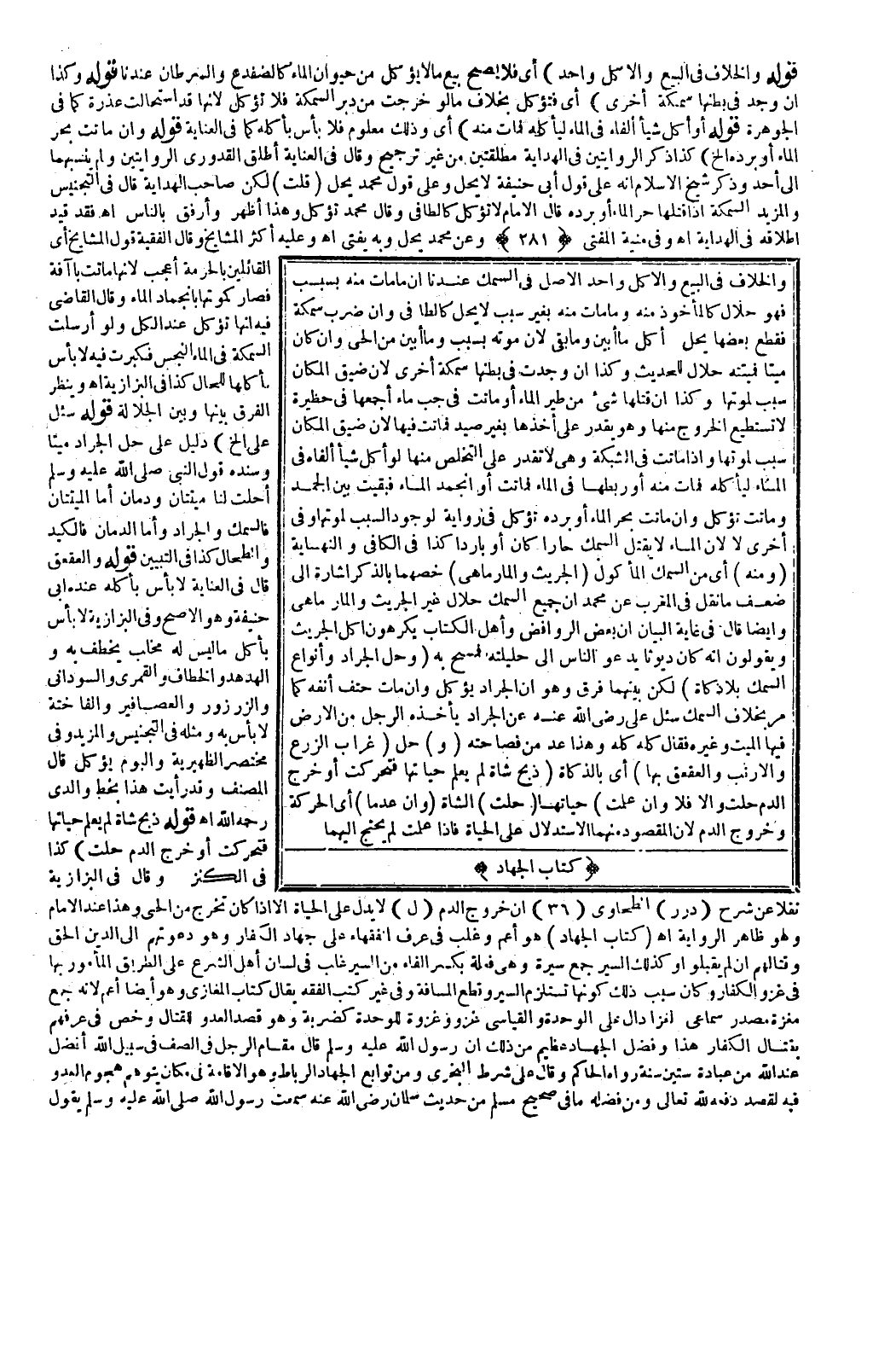 وَقَالَ فِي الْعِنَايَةِ أَطْلَقَ الْقُدُورِيُّ الرِّوَايَتَيْنِ وَلَمْ يَنْسُبْهُمَا إلَى أَحَدٍ، وَذَكَرَ شَيْخُ الْإِسْلَامِ أَنَّهُ عَلَى قَوْلِ أَبِي حَنِيفَةَ لَا يَحِلُّ وَعَلَى قَوْلِ مُحَمَّدٍ يَحِلُّ (قُلْت) لَكِنْ صَاحِبُ الْهِدَايَةِ قَالَ فِي التَّجْنِيسِ وَالْمَزِيدِ السَّمَكَةُ إذَا قَتَلَهَا حَرُّ الْمَاءِ أَوْ بَرْدُهُ قَالَ الْإِمَامُ لَا تُؤْكَلُ كَالطَّافِي.