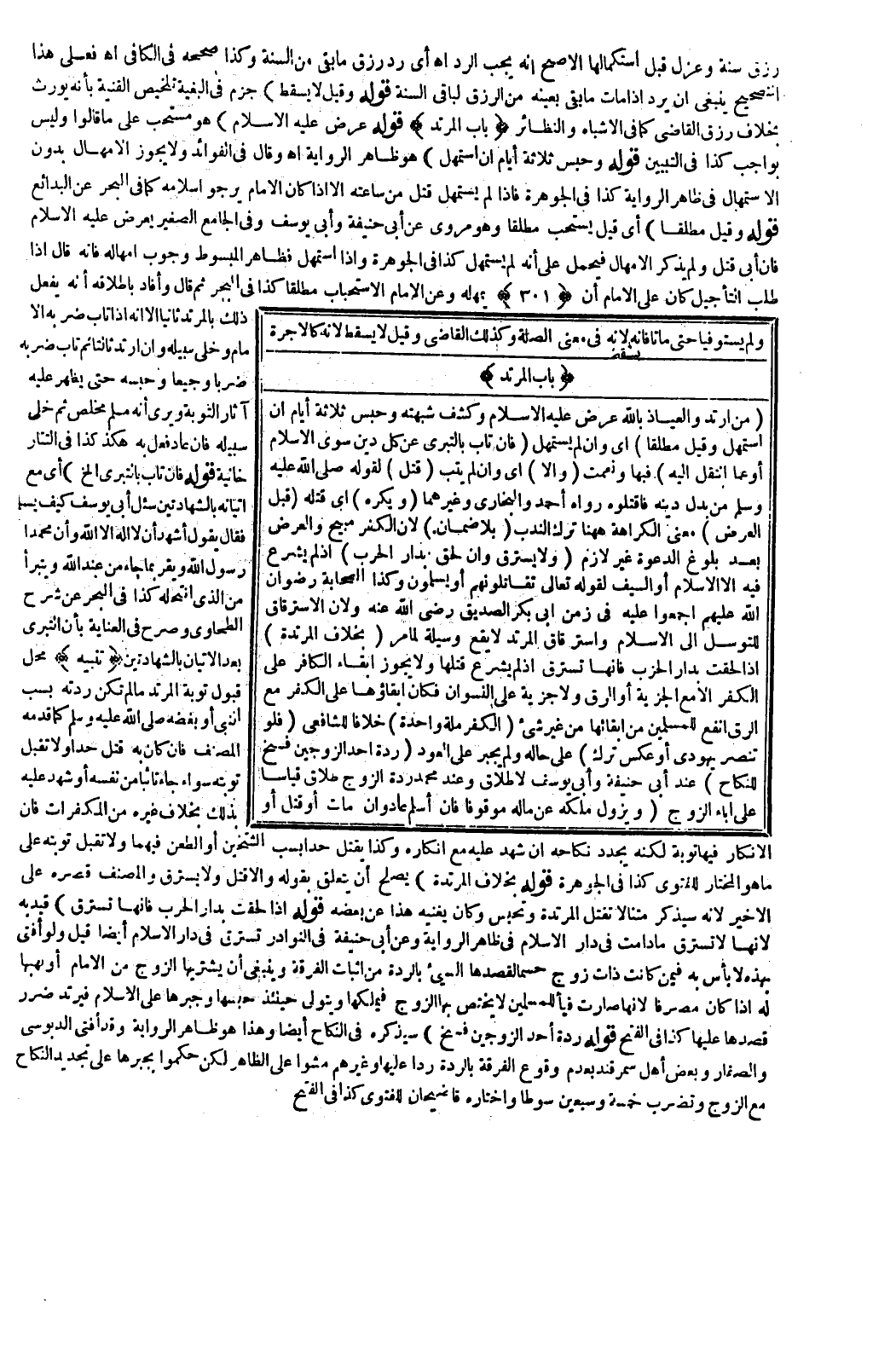 (مَنْ ارْتَدَّ وَالْعِيَاذُ بِاَللَّهِ عُرِضَ عَلَيْهِ الْإِسْلَامُ وَكُشِفَ شُبْهَتُهُ وَحُبِسَ ثَلَاثَةَ أَيَّامٍ إنْ اُسْتُمْهِلَ وَقِيلَ مُطْلَقًا) أَيْ وَإِنْ لَمْ يُسْتَمْهَلْ (فَإِنْ تَابَ بِالتَّبَرِّي عَنْ كُلِّ دِينٍ سِوَى الْإِسْلَامِ أَوْ عَمَّا انْتَقَلَ إلَيْهِ) فَبِهَا وَنِعْمَتْ (وَإِلَّا) أَيْ وَإِنْ لَمْ يَتُبْ (قُتِلَ) لِقَوْلِهِ - صَلَّى اللَّهُ عَلَيْهِ وَسَلَّمَ - «مَنْ بَدَّلَ دِينَهُ فَاقْتُلُوهُ» رَوَاهُ أَحْمَدُ وَالْبُخَارِيُّ وَغَيْرُهُمَا. (وَيُكْرَهُ) أَيْ قَتْلُهُ (قَبْلَ الْعَرْضِ) مَعْنَى الْكَرَاهَةِ هَاهُنَا تَرْكُ النَّدْبِ (بِلَا ضَمَانٍ) ؛ لِأَنَّ الْكُفْرَ مُبِيحٌ وَالْعَرْضُ بَعْدَ بُلُوغِ الدَّعْوَى غَيْرُ لَازِمٍ (وَلَا يُسْتَرَقُّ، وَإِنْ لَحِقَ بِدَارِ الْحَرْبِ) إذْ لَمْ يُشْرَعْ فِيهِ إلَّا الْإِسْلَامُ أَوْ السَّيْفُ لِقَوْلِهِ تَعَالَى {تُقَاتِلُونَهُمْ أَوْ يُسْلِمُونَ} [الفتح: 16] وَكَذَا الصَّحَابَةُ - رِضْوَانُ اللَّهِ عَلَيْهِمْ - أَجْمَعُوا عَلَيْهِ فِي زَمَنِ أَبِي بَكْرٍ الصِّدِّيقِ - رَضِيَ اللَّهُ عَنْهُ - وَلِأَنَّ الِاسْتِرْقَاقَ لِلتَّوَسُّلِ إلَى الْإِسْلَامِ، وَاسْتِرْقَاقُ الْمُرْتَدِّ لَا يَقَعُ وَسِيلَةً لِمَا مَرَّ (بِخِلَافِ الْمُرْتَدَّةِ) إذَا لَحِقَتْ بِدَارِ الْحَرْبِ، فَإِنَّهَا تُسْتَرَقُّ إذْ لَمْ يُشْرَعْ قَتْلُهَا وَلَا يَجُوزُ إبْقَاءُ الْكَافِرِ عَلَى الْكُفْرِ إلَّا مَعَ الْجِزْيَةِ أَوْ الرِّقِّ، وَلَا جِزْيَةَ عَلَى النِّسْوَانِ فَكَانَ إبْقَاؤُهَا عَلَى الْكُفْرِ مَعَ الرِّقِّ أَنْفَعُ لِلْمُسْلِمِينَ مِنْ إبْقَائِهَا مِنْ غَيْرِ شَيْءٍ (الْكُفْرُ مِلَّةٌ وَاحِدَةٌ) خِلَافًا لِلشَّافِعِيِّ (فَلَوْ تَنَصَّرَ يَهُودِيٌّ أَوْ عُكِسَ تُرِكَ) عَلَى حَالِهِ وَلَمْ يُجْبَرْ عَلَى الْعَوْدِ.