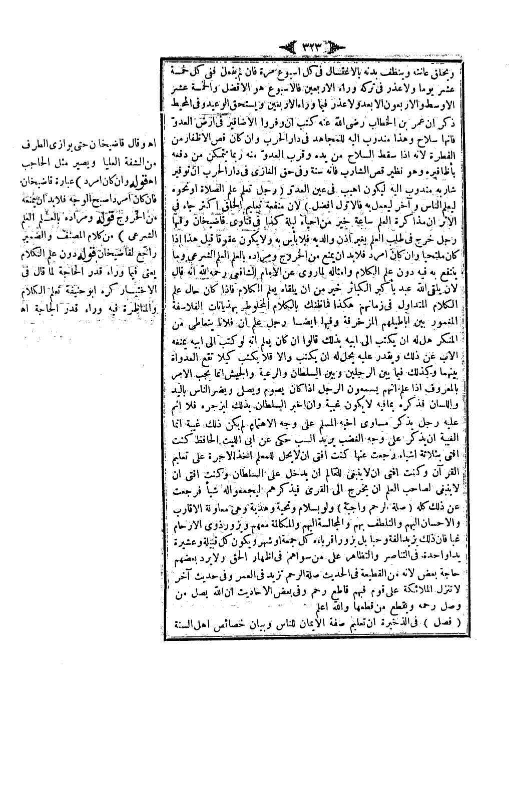 (فَصْلٌ) فِي الذَّخِيرَةِ إنَّ تَعْلِيمَ صِفَةِ الْإِيمَانِ لِلنَّاسِ وَبَيَانَ خَصَائِصِ أَهْلِ السُّنَّةِ