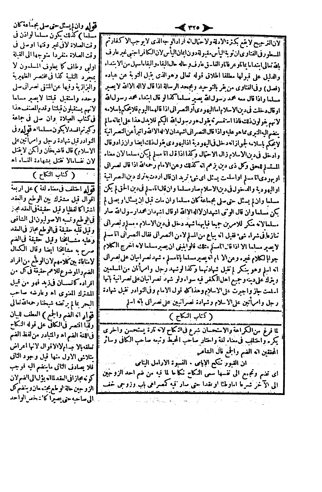 فَصْلٌ) (قَوْلُهُ: وَإِنْ لَمْ يَسْأَلْ حَتَّى صَلَّى بِجَمَاعَةٍ كَانَ مُسْلِمًا) كَذَلِكَ يَكُونُ مُسْلِمًا لَوْ أَذَّنَ فِي وَقْتِ الصَّلَاةِ لَا فِي غَيْرِ وَقْتِهَا أَوْ صَلَّى فِي وَقْتِ الصَّلَاةِ مُنْفَرِدًا مُتَوَجِّهًا إلَى الْقِبْلَةِ أَوْ لَبَّى وَطَافَ كَمَا يَطُوفُ الْمُسْلِمُونَ لَا بِمُجَرَّدِ التَّلْبِيَةِ، كَذَا فِي مُخْتَصَرِ الظَّهِيرِيَّةِ وَالْبَزَّازِيَّةِ وَفِيهَا عَنْ الْمُنْتَقَى نَصْرَانِيٌّ صَلَّى وَحْدَهُ وَاسْتَقْبَلَ قِبْلَتَنَا لَا يَصِيرُ مُسْلِمًا؛ لِأَنَّهُمْ يَسْتَقْبِلُونَ قِبْلَتَنَا وَقَدَّمَ الْمُصَنِّفُ هَذَا فِي كِتَابِ الصَّلَاةِ، وَإِنْ صَلَّى فِي جَمَاعَةٍ وَكَبَّرَ، ثُمَّ أَفْسَدَ لَا يَكُونُ مُسْلِمًا. اهـ.