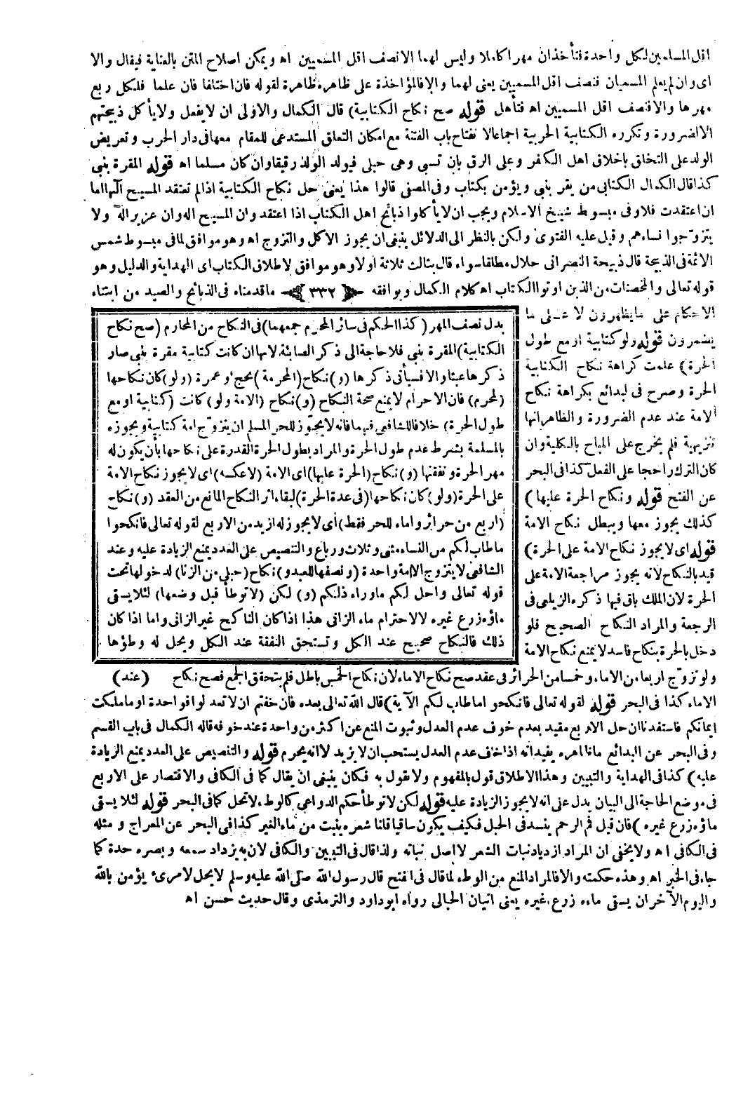 (قَوْلُهُ: لِقَوْلِهِ تَعَالَى {فَانْكِحُوا مَا طَابَ لَكُمْ} [النساء: 3] . الْآيَةَ) قَالَ اللَّهُ تَعَالَى بَعْدَهُ {فَإِنْ خِفْتُمْ أَلا تَعْدِلُوا فَوَاحِدَةً أَوْ مَا مَلَكَتْ أَيْمَانُكُمْ} [النساء: 3] ، فَاسْتَفَدْنَا أَنَّ حِلَّ الْأَرْبَعِ مُقَيَّدٌ بِعَدَمِ خَوْفِ عَدَمِ الْعَدْلِ وَثُبُوتِ الْمَنْعِ عَنْ أَكْثَرَ مِنْ وَاحِدَةٍ عِنْدَ خَوْفِهِ قَالَهُ الْكَمَالُ فِي بَابِ الْقَسْمِ.