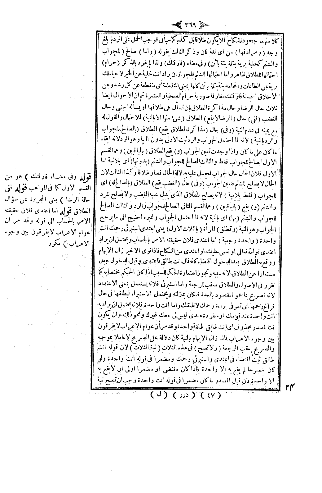كُلًّا مِنْهَا جُحُودٌ لِلنِّكَاحِ فَلَا يَكُونُ طَلَاقًا، بَلْ كَذِبًا كَمَا سَيَأْتِي فَوَجَبَ الْحَمْلُ عَلَى الرَّدِّ بِأَبْلَغِ وَجْهٍ (وَمُرَادِفُهَا) مِنْ أَيِّ لُغَةٍ كَانَ، وَذَكَرَ الثَّالِثَ بِقَوْلِهِ (وَإِمَّا) صَالِحٌ (لِلْجَوَابِ وَالشَّتْمِ كَخَلِيَّةٍ بَرِيَّةٍ بَتْلَةٍ بَتَّةٍ بَائِنٌ) وَفِي مَعْنَاهُ (فَارَقْتُك) وَلِذَا لَمْ يُفْرَدْ بِالذِّكْرِ (حَرَامٌ) احْتِمَالُهَا لِلطَّلَاقِ ظَاهِرٌ، وَأَمَّا احْتِمَالُهَا الشَّتْمَ فَلِجَوَازِ أَنْ يُرَادَ أَنْتِ خَلِيَّةٌ عَنْ الْخَيْرِ لَا حَيَاءَ لَك بَرِيَّةٍ عَنْ الطَّاعَاتِ وَالْمَحَامِدِ بَتَّةٍ بَتْلَةٍ بَائِنٍ كُلُّهَا بِمَعْنَى الْمُنْقَطِعَةِ أَيْ مُنْقَطِعَةٌ عَنْ كُلِّ رُشْدٍ، وَعَنْ الْأَخْلَاقِ الْحَسَنَةِ فَارَقْتُك مُفَارَقَةً صُورِيَّةً حَرَامُ الصُّحْبَةِ وَالْعِشْرَةِ، ثُمَّ إنَّ الْأَحْوَالَ أَيْضًا ثَلَاثٌ، حَالُ الرِّضَا وَحَالُ مُذَاكَرَةِ الطَّلَاقِ بِأَنْ تَسْأَلَ هِيَ طَلَاقَهَا أَوْ يَسْأَلَهُ أَجْنَبِيٌّ وَحَالُ الْغَضَبِ (فَفِي) حَالِ (الرِّضَا لَا يَقَعُ) الطَّلَاقُ (بِشَيْءٍ مِنْهَا إلَّا بِالنِّيَّةِ) لِلِاحْتِمَالِ وَالْقَوْلُ لَهُ مَعَ يَمِينِهِ فِي عَدَمِ النِّيَّةِ.