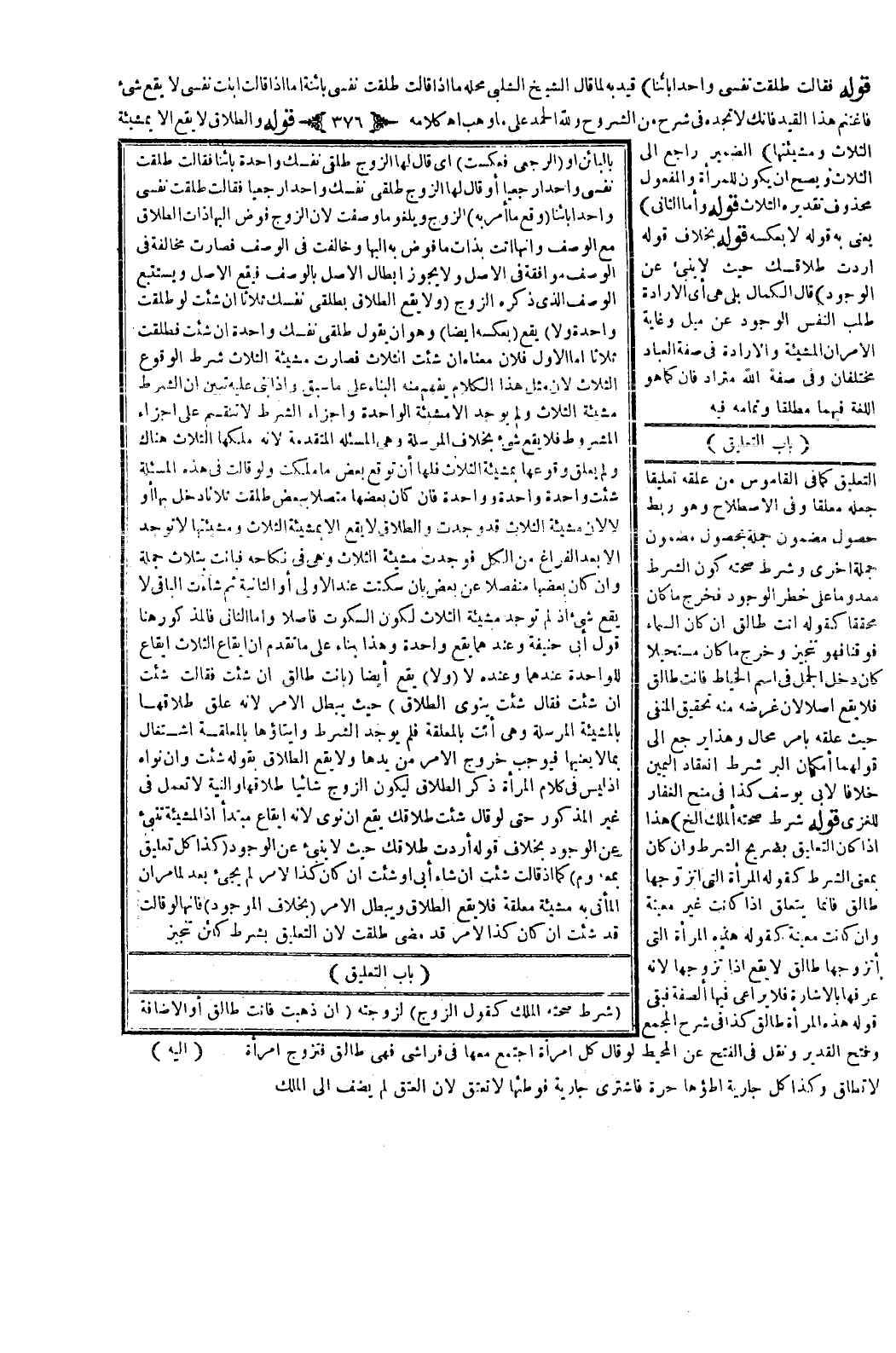 (بَابُ التَّعْلِيقِ) التَّعْلِيقُ كَمَا فِي الْقَامُوسِ مِنْ عَلَّقَهُ تَعْلِيقًا جَعَلَهُ مُعَلَّقًا، وَفِي الِاصْطِلَاحِ هُوَ رَبْطُ حُصُولِ مَضْمُونِ جُمْلَةٍ بِحُصُولِ مَضْمُونِ جُمْلَةٍ أُخْرَى.