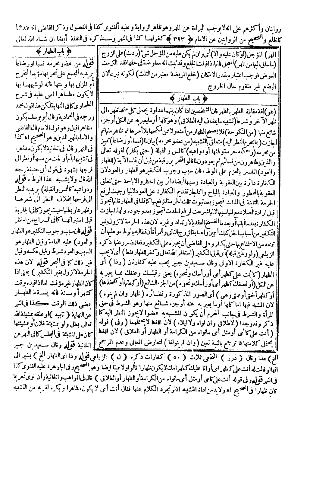 (بَابُ الظِّهَارِ) (قَوْلُهُ: مِنْ عُضْوِ مَحْرَمِهِ نَسَبًا، أَوْ رَضَاعًا) يُرِيدُ بِهِ الْمُجْمَعَ عَلَى تَحْرِيمِهَا مُؤَبَّدًا لِيَخْرُجَ أُمُّ الْمَزْنِيِّ بِهَا وَبِنْتُهَا فَإِنَّهُ لَوْ شَبَّهَهَا بِهَا لَا يَكُونُ مُظَاهِرًا نَصَّ عَلَيْهِ فِي شَرْحِ الطَّحَاوِيِّ كَمَا فِي النِّهَايَةِ لَكِنَّ هَذَا قَوْلُ مُحَمَّدٍ وَرَجَّحَهُ فِي الْعِمَادِيَّةِ وَقَالَ أَبُو يُوسُفَ: يَكُونُ مُظَاهِرًا قِيلَ وَهُوَ قَوْلُ الْإِمَامِ قَالَ الْقَاضِي وَالْإِمَامُ ظَهِيرُ الدِّينِ: وَهُوَ الصَّحِيحُ اهـ كَذَا فِي النَّهْرِ وَقَالَ فِي الْخَانِيَّةِ: لَا يَكُونُ مُظَاهِرًا فِي تَشْبِيهِهَا بِأُمِّ، أَوْ بِنْتِ مَنْ مَسَّهَا، أَوْ نَظَرَ إلَى فَرْجِهَا بِشَهْوَةٍ فِي قَوْلِ أَبِي حَنِيفَةَ - رَحِمَهُ اللَّهُ - قَالَ وَلَا يُشْبِهُ هَذَا الْوَطْءَ.
