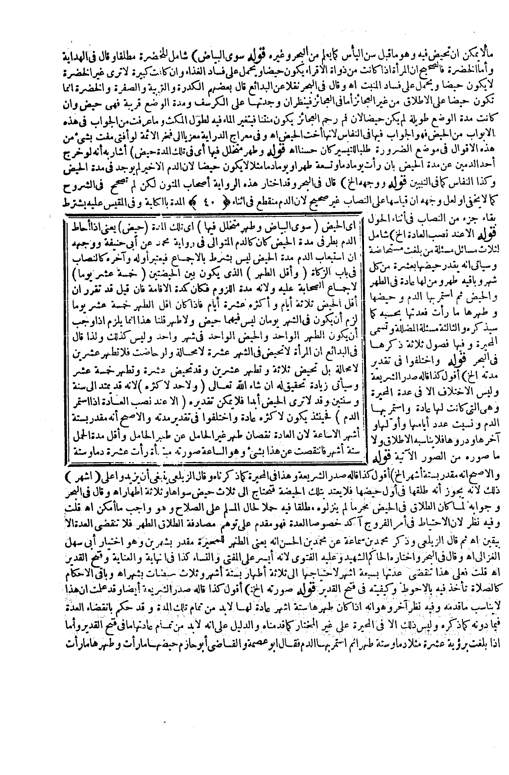 قَالَ فِي الْبَحْرِ وَقَدْ اخْتَارَ هَذِهِ الرِّوَايَةَ أَصْحَابُ الْمُتُونِ لَكِنْ لَمْ تُصَحَّحْ فِي الشُّرُوحِ كَمَا لَا يَخْفَى، وَلَعَلَّ وَجْهَهُ أَنَّ قِيَاسَهَا عَلَى النِّصَابِ غَيْرُ صَحِيحٍ لِأَنَّ الدَّمَ مُنْقَطِعٌ فِي أَثْنَاءِ الْمُدَّةِ بِالْكُلِّيَّةِ وَفِي الْمَقِيسِ عَلَيْهِ يُشْتَرَطُ بَقَاءُ جُزْءٍ مِنْ النِّصَابِ فِي أَثْنَاءِ الْحَوْلِ.