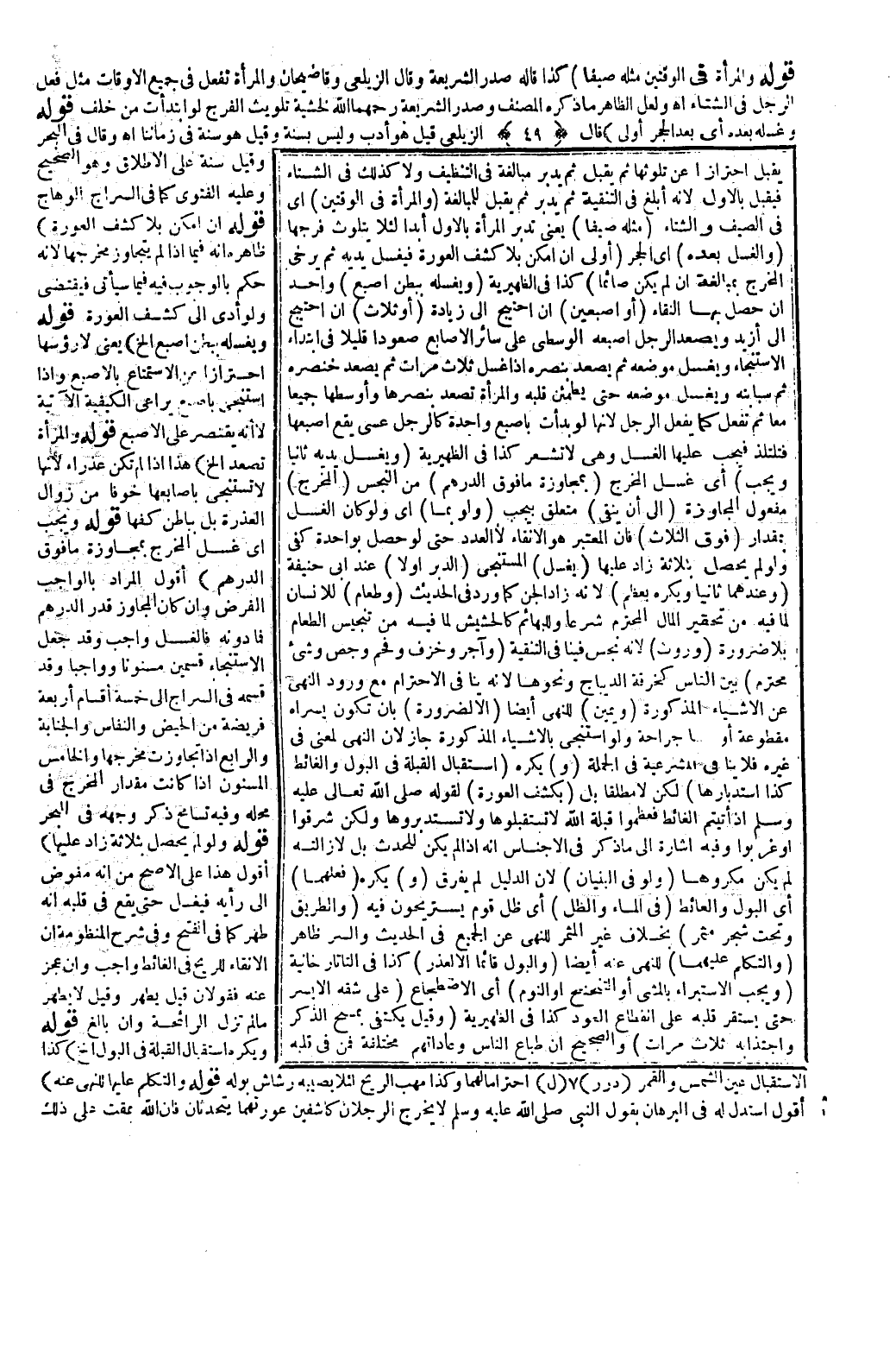 وَلَعَلَّ الظَّاهِرَ مَا ذَكَرَهُ الْمُصَنِّفُ وَصَدْرُ الشَّرِيعَةِ رَحِمَهُمَا اللَّهُ لِخَشْيَةِ تَلْوِيثِ الْفَرْجِ لَوْ أَبْتَدَأَتْ مِنْ خَلْفُ (قَوْلُهُ: وَغَسْلُهُ بَعْدَهُ أَيْ بَعْدَ الْحَجَرِ أَوْلَى) قَالَ الزَّيْلَعِيُّ: قِيلَ هُوَ أَدَبٌ وَلَيْسَ بِسُنَّةٍ وَقِيلَ هُوَ سُنَّةٌ فِي زَمَانِنَا اهـ.