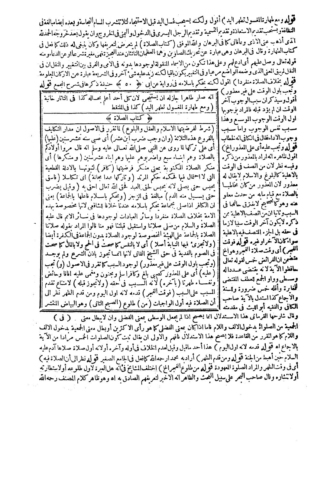 (كِتَابُ الصَّلَاةِ) (شَرْطٌ لِفَرْضِيَّتِهَا الْإِسْلَامُ، وَالْعَقْلُ، وَالْبُلُوغُ) لِمَا تَقَرَّرَ فِي الْأُصُولِ أَنَّ مَدَارَ التَّكْلِيفِ بِالْفُرُوعِ هَذِهِ الثَّلَاثَةُ (وَإِنْ وَجَبَ ضَرْبُ ابْنِ عَشْرٍ) أَيْ صَبِيٍّ سِنُّهُ عَشْرُ سِنِينَ عَلَيْهَا أَيْ عَلَى تَرْكِهَا لِمَا رُوِيَ عَنْ النَّبِيِّ - صَلَّى اللَّهُ تَعَالَى عَلَيْهِ وَسَلَّمَ - أَنَّهُ قَالَ «مُرُوا أَوْلَادَكُمْ بِالصَّلَاةِ وَهُمْ أَبْنَاءُ سَبْعٍ وَاضْرِبُوهُمْ عَلَيْهَا وَهُمْ أَبْنَاءُ عَشْرِ سِنِينَ» .