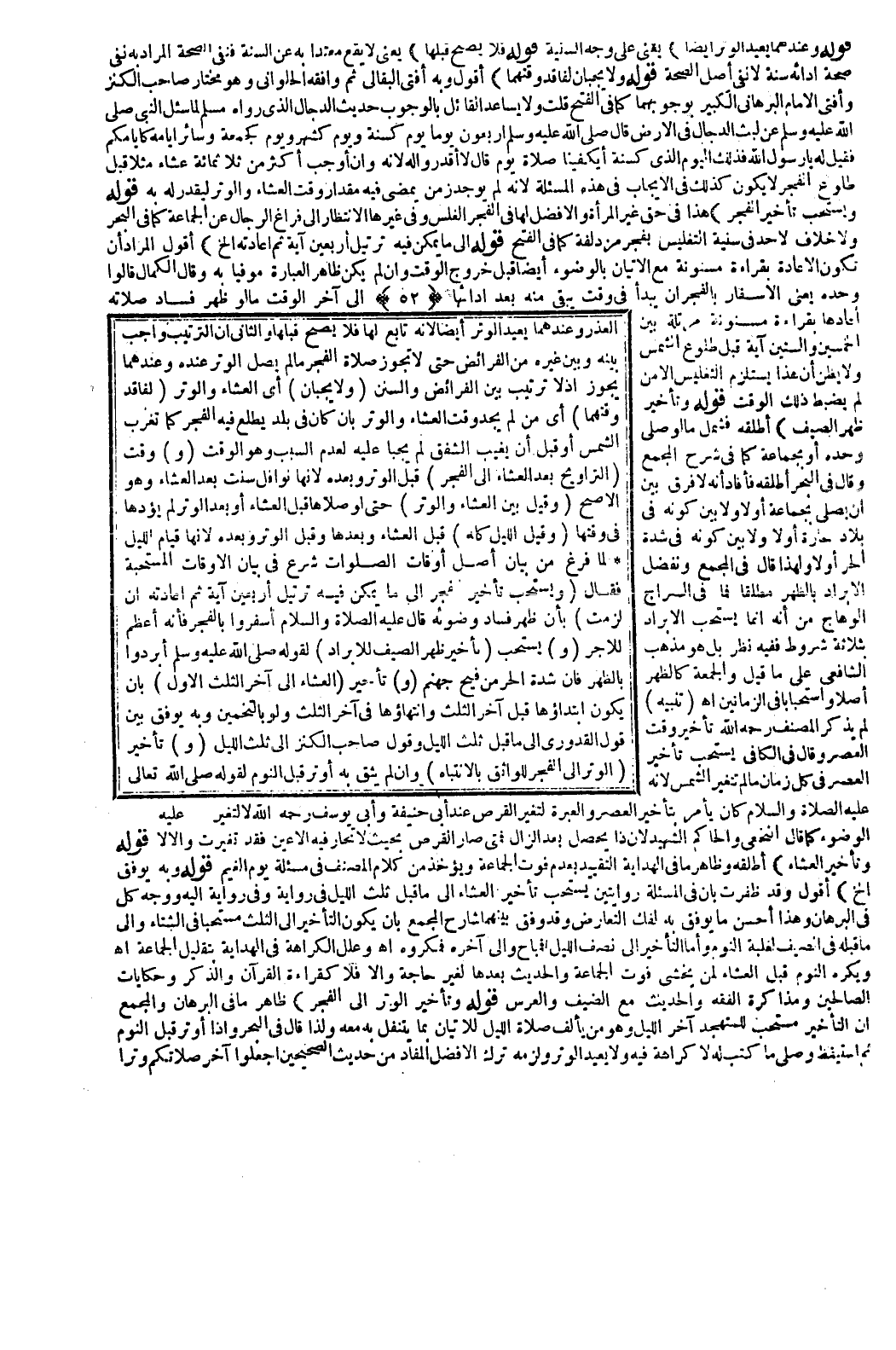 وَيُكْرَهُ النَّوْمُ قَبْلَ الْعِشَاءِ لِمَنْ يَخْشَى فَوْتَ الْجَمَاعَةِ، وَالْحَدِيثُ بَعْدَهَا لِغَيْرِ حَاجَةٍ وَإِلَّا فَلَا كَقِرَاءَةِ الْقُرْآنِ، وَالذِّكْرِ وَحِكَايَاتِ الصَّالِحِينَ وَمُذَاكَرَةِ الْفِقْهِ، وَالْحَدِيثِ مَعَ الضَّيْفِ، وَالْعُرْسِ (قَوْلُهُ: وَتَأْخِيرُ الْوَتْرِ إلَى الْفَجْرِ) ظَاهِرُ مَا فِي الْبُرْهَانِ، وَالْمَجْمَعِ أَنَّ التَّأْخِيرَ مُسْتَحَبٌّ لِلْمُتَهَجِّدِ آخِرَ اللَّيْلِ وَهُوَ مَنْ يَأْلَفُ صَلَاةَ اللَّيْلِ لِلْإِتْيَانِ بِمَا يَتَنَفَّلُ بِهِ مَعَهُ وَلِذَا قَالَ فِي الْبَحْرِ وَإِذَا أَوْتَرَ قَبْلَ النَّوْمِ ثُمَّ اسْتَيْقَظَ، وَصَلَّى مَا كُتِبَ لَهُ لَا كَرَاهَةَ فِيهِ وَلَا يُعِيدُ الْوَتْرَ وَلَزِمَهُ تَرْكُ الْأَفْضَلِ الْمُفَادِ مِنْ حَدِيثِ الصَّحِيحَيْنِ «اجْعَلُوا آخِرَ صَلَاتِكُمْ وِتْرًا»