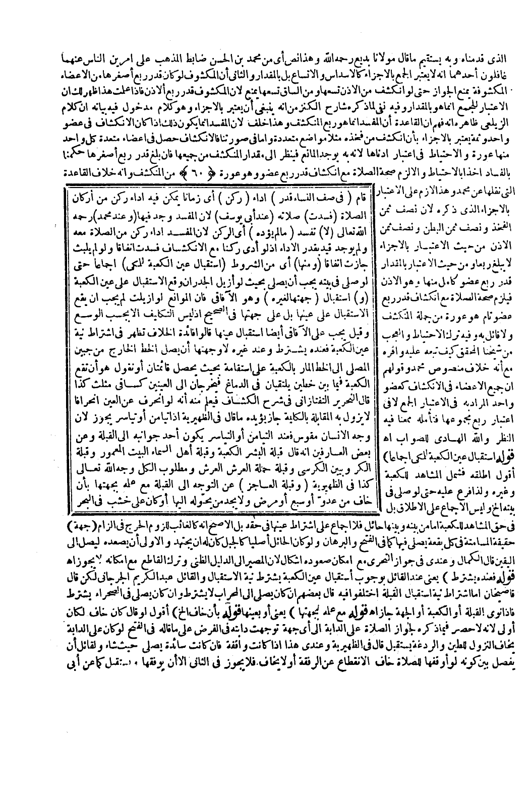 ـــــــــــــــــــــــــــــQالَّذِي قَدَّمْنَاهُ وَبِهِ يَسْتَقِيمُ مَا قَالَ مَوْلَانَا بَدِيعٌ - رَحِمَهُ اللَّهُ - وَهَذَا نَصٌّ أَيْ مِنْ مُحَمَّدِ بْنِ الْحَسَنِ ضَابِطُ الْمَذْهَبِ عَلَى أَمْرَيْنِ النَّاسُ عَنْهُمَا غَافِلُونَ أَحَدُهُمَا أَنَّهُ لَا يُعْتَبَرُ الْجَمْعُ بِالْأَجْزَاءِ كَالْأَسْدَاسِ وَالْأَتْسَاعِ بَلْ بِالْمِقْدَارِ وَالثَّانِي أَنَّ الْمَكْشُوفَ لَوْ كَانَ قَدْرَ رُبْعِ أَصْغَرِهَا مِنْ الْأَعْضَاءِ الْمَكْشُوفَةِ يَمْنَعُ الْجَوَازَ حَتَّى لَوْ انْكَشَفَ مِنْ الْأُذُنِ تُسْعُهَا وَمِنْ السَّاقِ تُسْعُهَا يَمْنَعُ؛ لِأَنَّ الْمَكْشُوفَ قَدْرُ رُبْعِ الْأُذُنِ فَإِذَا عَلِمْت هَذَا ظَهَرَ لَك أَنَّ الِاعْتِبَارَ لِلْجَمْعِ إنَّمَا هُوَ بِالْمِقْدَارِ وَفِيهِ نَفْيٌ لِمَا ذَكَرَهُ شَارِحُ الْكَنْزِ مِنْ أَنَّهُ يَنْبَغِي أَنْ يُعْتَبَرَ بِالْأَجْزَاءِ وَهُوَ كَلَامٌ مَدْخُولٌ فِيهِ بَيَانُهُ أَنَّ كَلَامَ الزَّيْلَعِيِّ ظَاهِرُهُ أَنَّهُ فَهِمَ أَنَّ الْقَاعِدَةَ أَنَّ الْمُفْسِدَ إنَّمَا هُوَ رُبْعُ الْمُنْكَشِفِ وَهَذَا خُلْفٌ؛ لِأَنَّ الْمُفْسِدَ إنَّمَا يَكُونُ ذَلِكَ إذَا كَانَ الِانْكِشَافُ فِي عُضْوٍ وَاحِدٍ وَثَمَّةَ يُعْتَبَرُ بِالْأَجْزَاءِ بِأَنْ انْكَشَفَ مِنْ فَخِذِهِ مَثَلًا مَوَاضِعُ مُتَعَدِّدَةٌ. وَأَمَّا فِي صُورَتِنَا فَالِانْكِشَافُ حَصَلَ فِي أَعْضَاءَ مُتَعَدِّدَةٍ كُلُّ وَاحِدٍ مِنْهَا عَوْرَةٌ، وَالِاحْتِيَاطُ فِي اعْتِبَارِ أَدْنَاهَا؛ لِأَنَّهُ بِهِ يُوجَدُ الْمَانِعُ فَيُنْظَرُ إلَى مِقْدَارِ الْمُنْكَشِفِ مِنْ جَمِيعِهَا فَإِنْ بَلَغَ قَدْرَ رُبْعِ أَصْغَرِهَا حَكَمْنَا بِالْفَسَادِ أَخْذًا بِالِاحْتِيَاطِ وَإِلَّا لَزِمَ صِحَّةُ الصَّلَاةِ مَعَ انْكِشَافِ قَدْرِ رُبْعِ عُضْوٍ هُوَ عَوْرَةٌ مِنْ الْمُنْكَشِفِ وَأَنَّهُ خِلَافُ الْقَاعِدَةِ الَّتِي نَقَلَهَا عَنْ مُحَمَّدٍ وَهَذَا لَازِمٌ عَلَى الِاعْتِبَارِ بِالْأَجْزَاءِ الَّذِي ذَكَرَهُ؛ لِأَنَّ نِصْفَ ثُمُنِ الْفَخِذِ وَنِصْفَ ثُمُنِ الْبَطْنِ وَنِصْفَ ثُمُنِ الْأُذُنِ مِنْ حَيْثُ الِاعْتِبَارُ بِالْأَجْزَاءِ لَا يَبْلُغُ رُبْعًا وَمِنْ حَيْثُ الِاعْتِبَارُ بِالْمِقْدَارِ يَبْلُغُ قَدْرَ رُبْعِ عُضْوٍ كَامِلٍ مِنْهَا وَهُوَ الْأُذُنُ فَيَلْزَمُ صِحَّةُ الصَّلَاةِ مَعَ انْكِشَافِ قَدْرِ رُبْعِ عُضْوٍ تَامٍّ هُوَ عَوْرَةٌ مِنْ جُمْلَةِ الْمُنْكَشِفِ وَلَا قَائِلَ بِهِ وَفِيهِ تَرْكُ الِاحْتِيَاطِ وَالْعَجَبُ مِنْ شَيْخِنَا الْمُحَقِّقِ كَيْفَ تَبِعَهُ عَلَيْهِ وَأَقَرَّهُ مَعَ أَنَّهُ خِلَافُ مَنْصُوصِ مُحَمَّدٍ. وَقَوْلُهُمْ إنَّ جَمِيعَ الْأَعْضَاءِ فِي الِانْكِشَافِ كَعُضْوٍ وَاحِدٍ الْمُرَادُ بِهِ فِي الِاعْتِبَارِ الْجَمْعُ لَا فِي اعْتِبَارِ رُبْعِ مَجْمُوعِهَا فَتَأَمَّلْهُ مُمْعِنًا فِيهِ النَّظَرَ وَاَللَّهُ الْهَادِي لِلصَّوَابِ اهـ.
