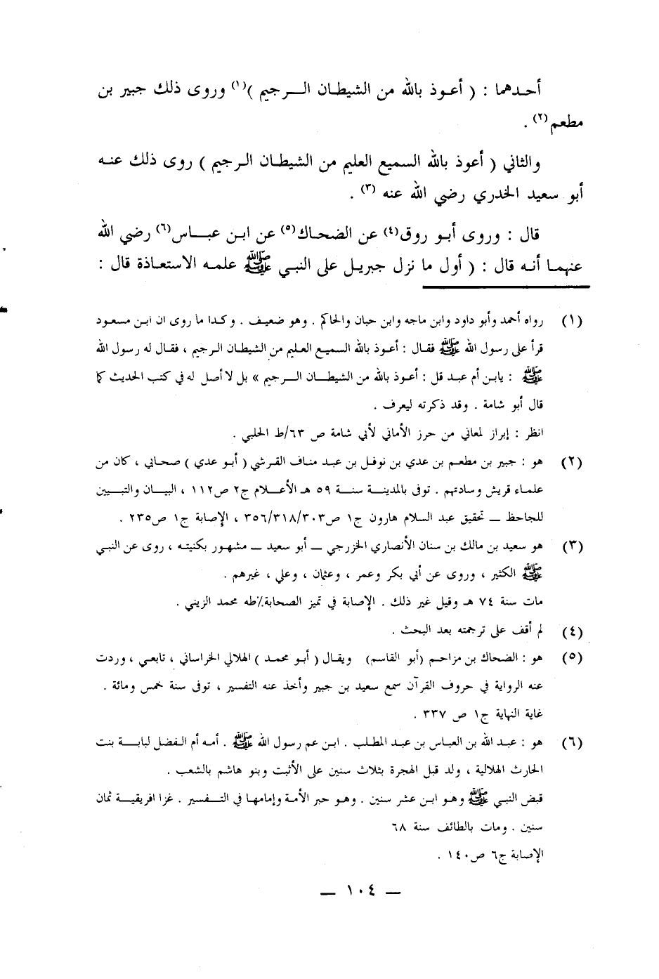 (¬2) هو: جبير بن مطعم بن عدي بن نوفل بن عبد مناف القرشي (أبو عدي) صحابي، كان من علماء قريش وسادتهم. توفى بالمدينة سنة 59 هـ الأعلام ج 2 ص 112، البيان والتبيين للجاحظ - تحقيق عبد السلام هارون ج 1 ص 303/ 318 / 356، الإصابة ج 1 ص 235.