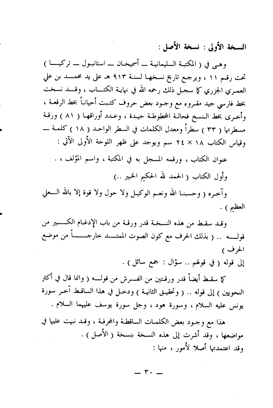 النسخة الأولى: نسخة الأصل: