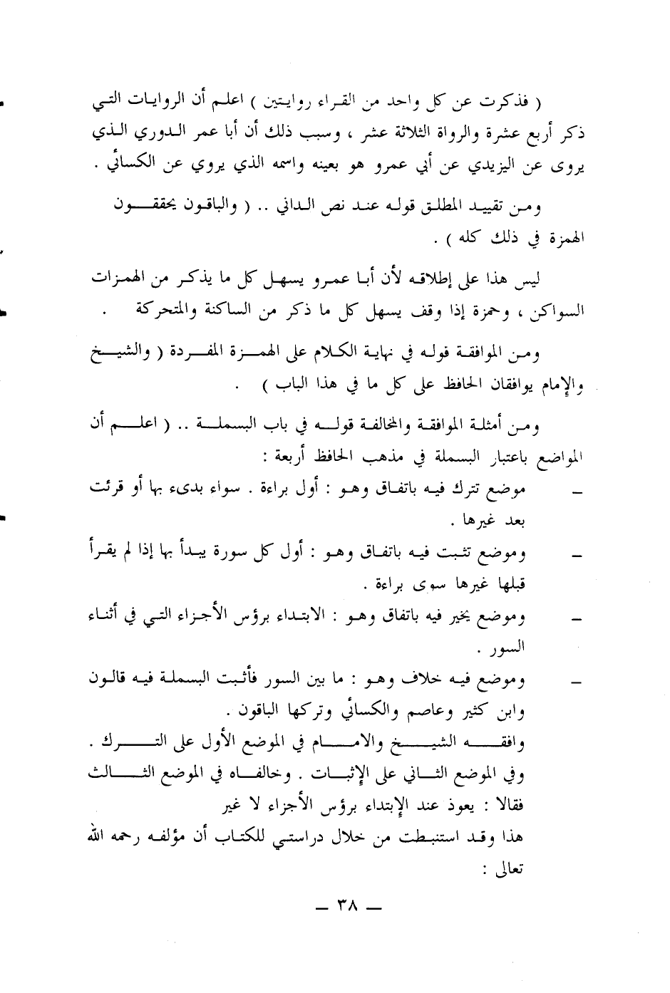 ومن الموافقة قوله في نهاية الكلام على الهمزة المفردة (والشيخ والِإمام يوافقان الحافظ على كل ما في هذا الباب).