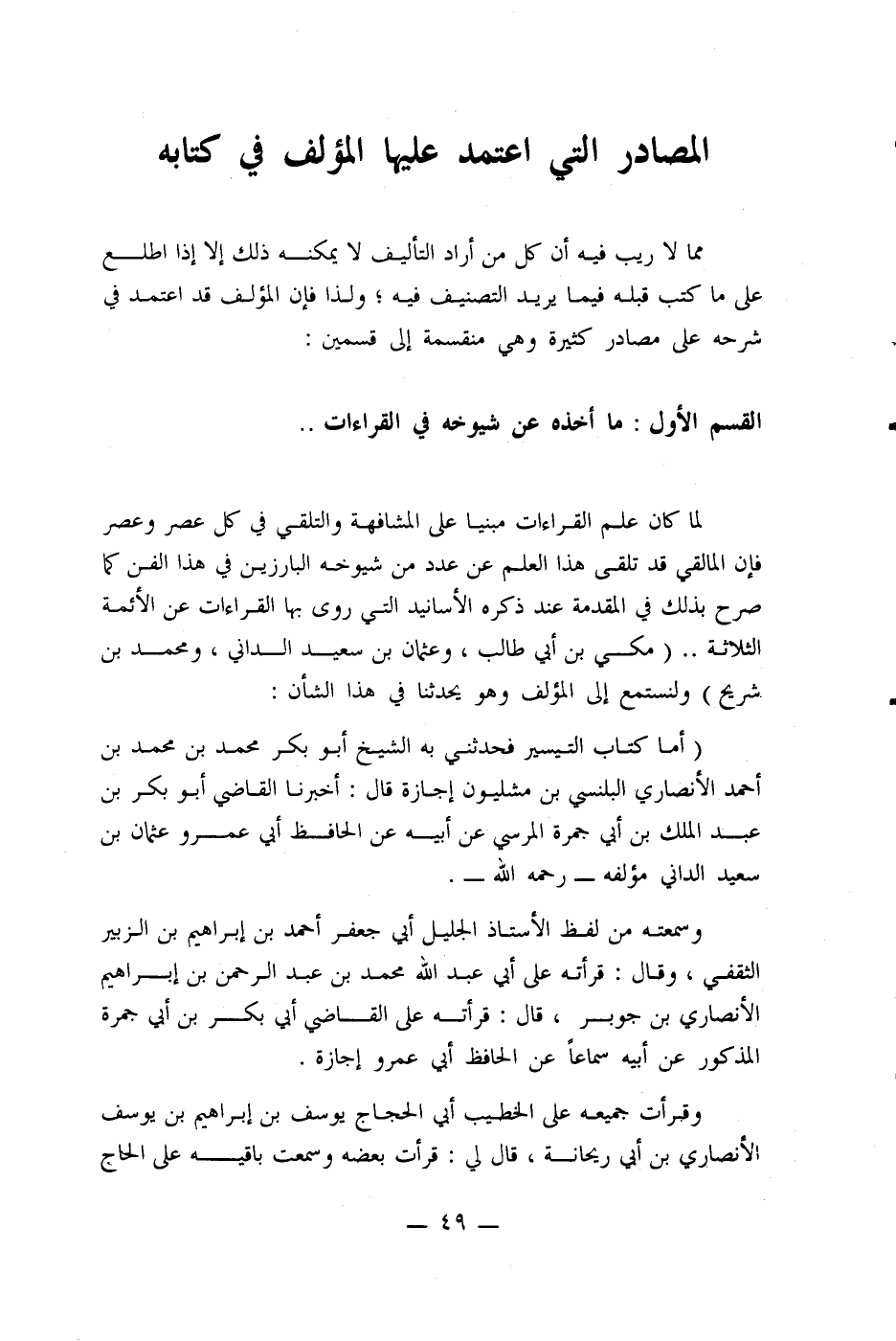 القسم الأول: ما أخذه عن شيوخه في القراءات ..