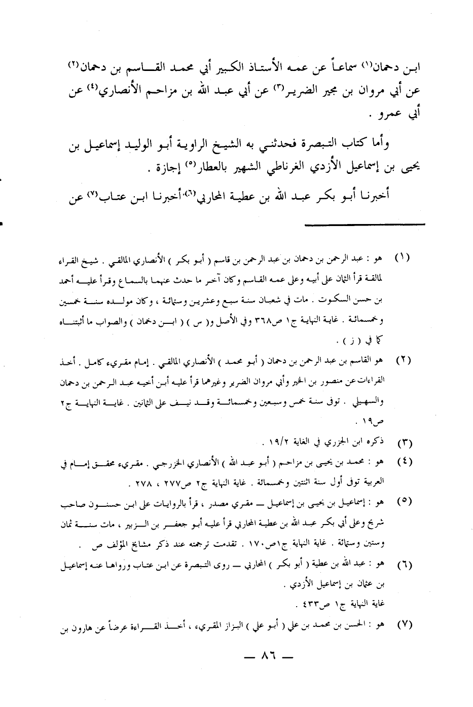 (¬2) هو القاسم عبد الرحمن عن بن دحمان (أبو محمد) الأنصاري المالقي. إمام مقرئ كامل. أخذ القراءات عن منصور الخير وأبي مروان الضرير وغيرهما قرأ عليه ابن أخيه عبد الرحمن بن دحمان والسهيلي. توفي سنة خمس وسبعين وخمسمائة وقد نيف على الثمانين. غاية النهاية ح 2 ص 19.