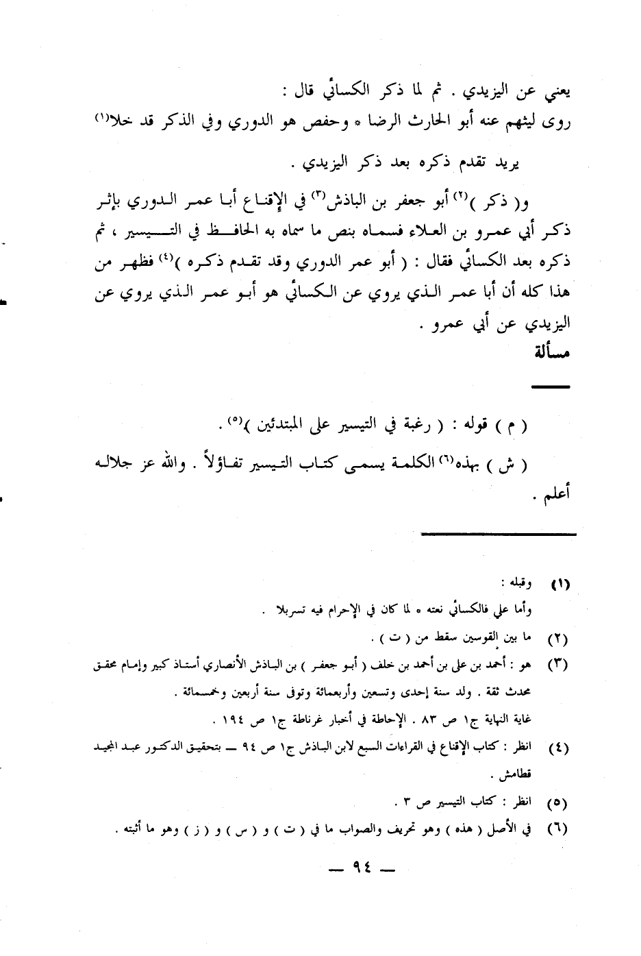 (¬4) انظر: كتاب الإِقناع في القراءات السبع لإبن الباذش ج [ص 94 - بتحقيق الدكتور عبد المجيد قطامش.