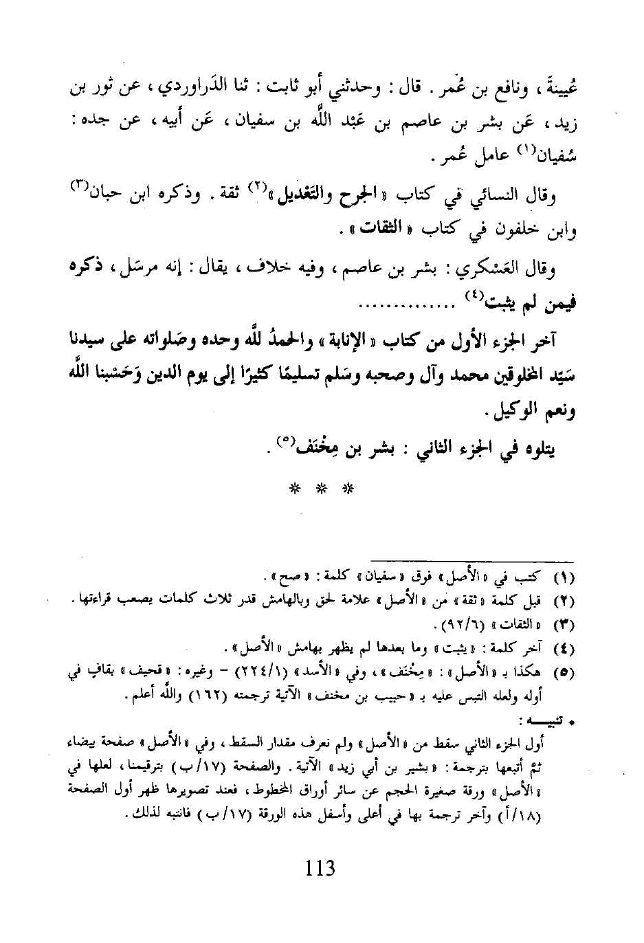 آخر الجزء الأول من كتاب "الإنابة" والحمدُ لله وحده وصَلواته على سيدنا سَيد المخلوقين محمَّد وآل وصحبه وسَلم تسليمًا كثيرا إلى يوم الدين وَحَسبنا الله ونعم الوكيل.
