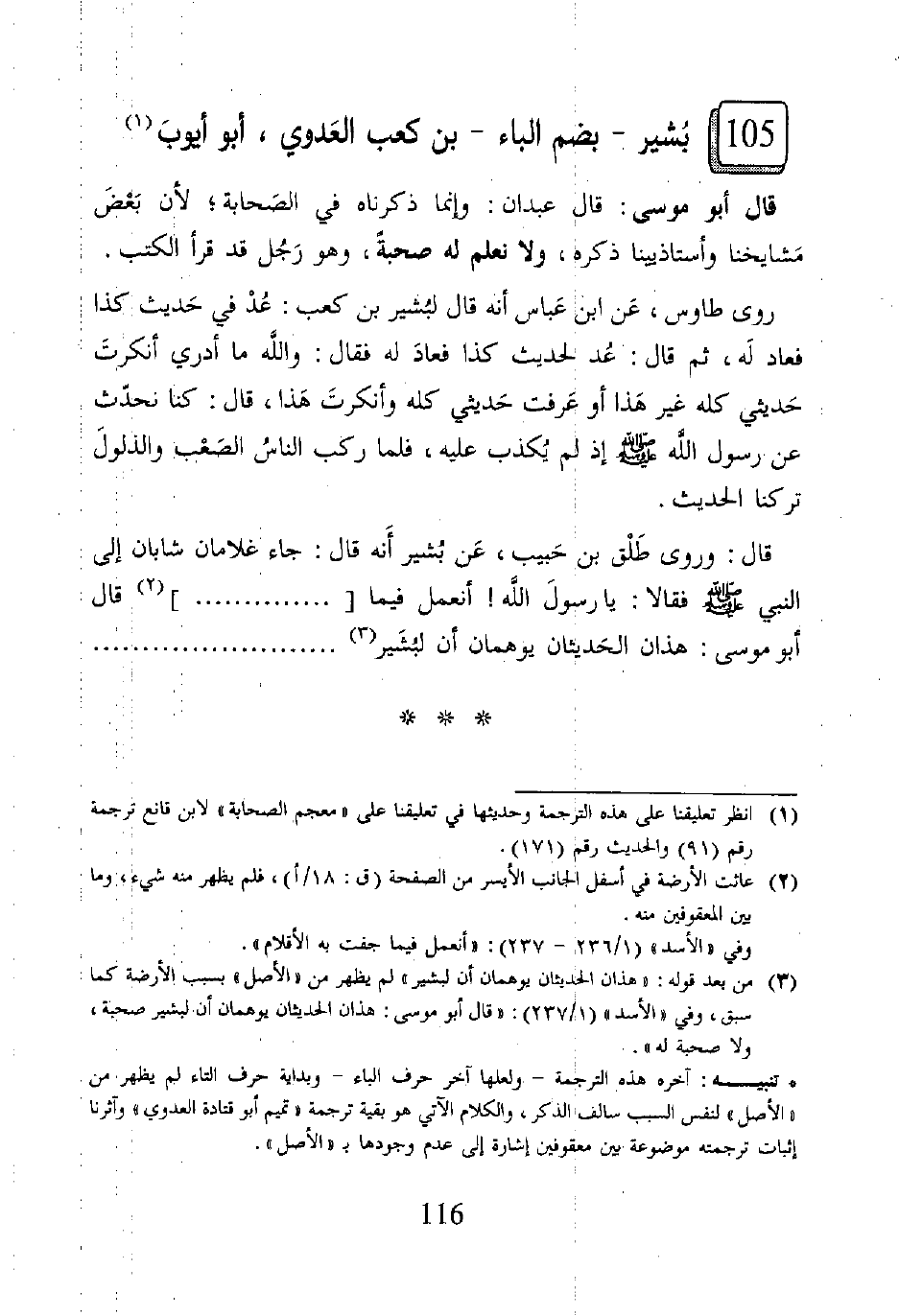١٠٥ - بُشير -بضم الباء- بن كعب العَدوي، أبو أيوبَ (١)