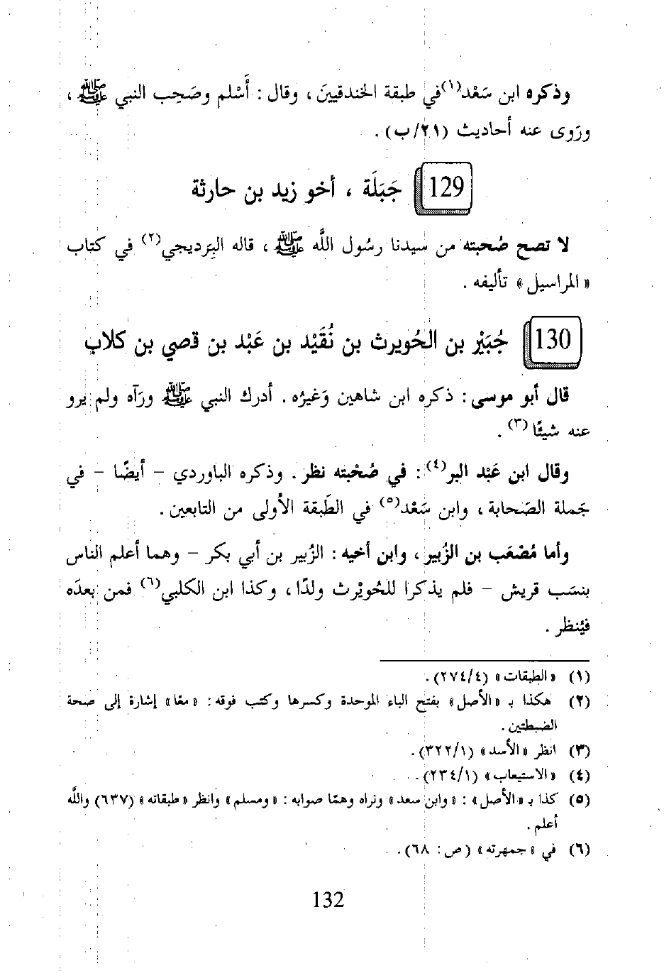 ١٣٠ - جُبَير بن الحُويرث بن نُقَيد بن عَبْد بن قصي بن كلاب
