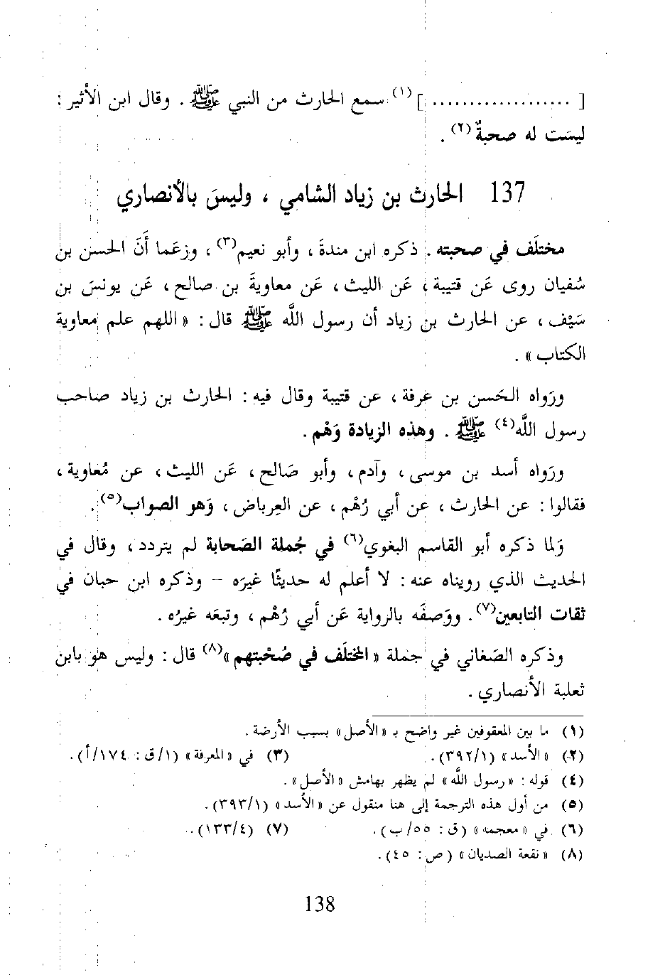 [. . . .] (١) سمع الحارث من النبي - صلى الله عليه وسلم -. وقال ابن الأثير: ليسَت له صحبةٌ (٢).