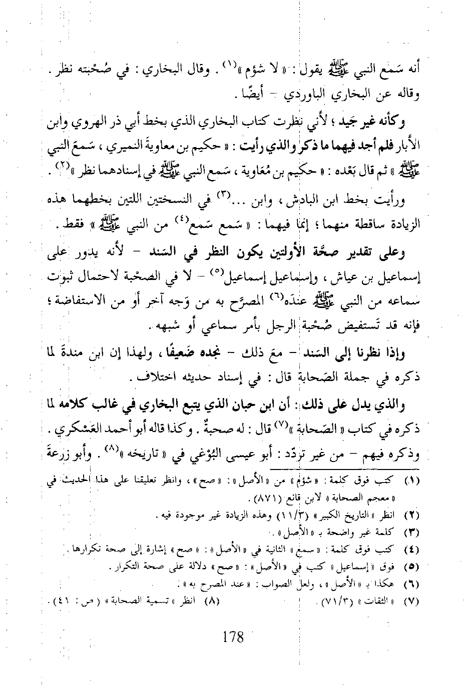 وعلى تقدير صحَّة الأولتين يكون النظر في السَند - لأنه يدور على إسماعيل بن عياش، وإسماعيل إسماعيل (٥) - لا في الصحْبة لاحتمال ثبوت سماعه من النبي - صلى الله عليه وسلم - عندَه (٦) المصرَّح به من وَجه آخر أو من الاستفاضة؛ فإنَّه قد تَستفيض صُحْبة الرجل بأمر سماعي أو شبهه.