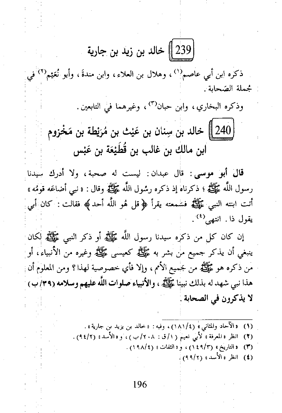 ٢٤٠ - خالد بن سِنان بن عَيث بن مُرَيطة بن مَخْزوم بن مالك بن غالب بن قُطَيعَة بن عَبْس
