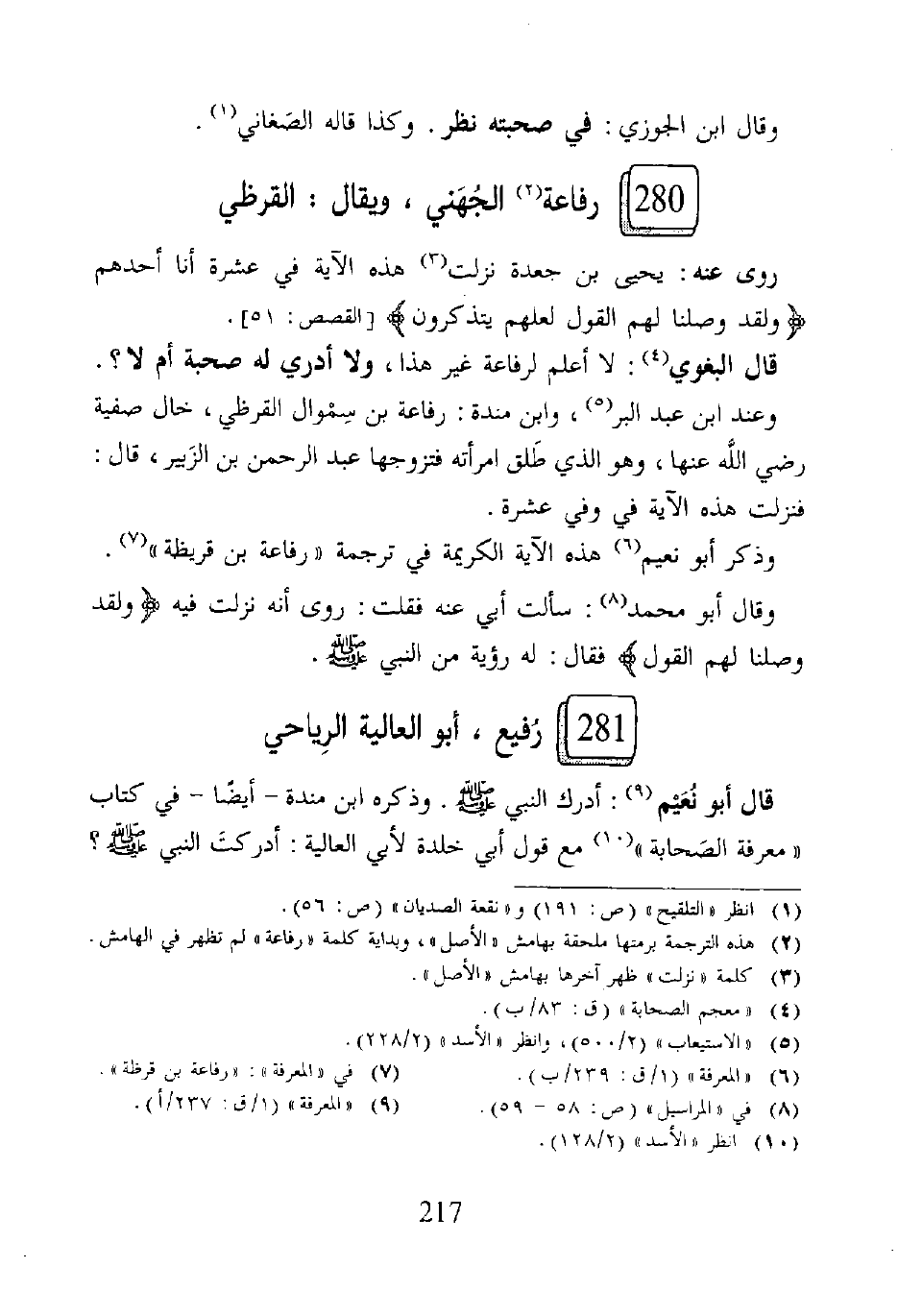 ٢٨٠ - رفاعة (٢) الجُهَني، ويقال: القرظي