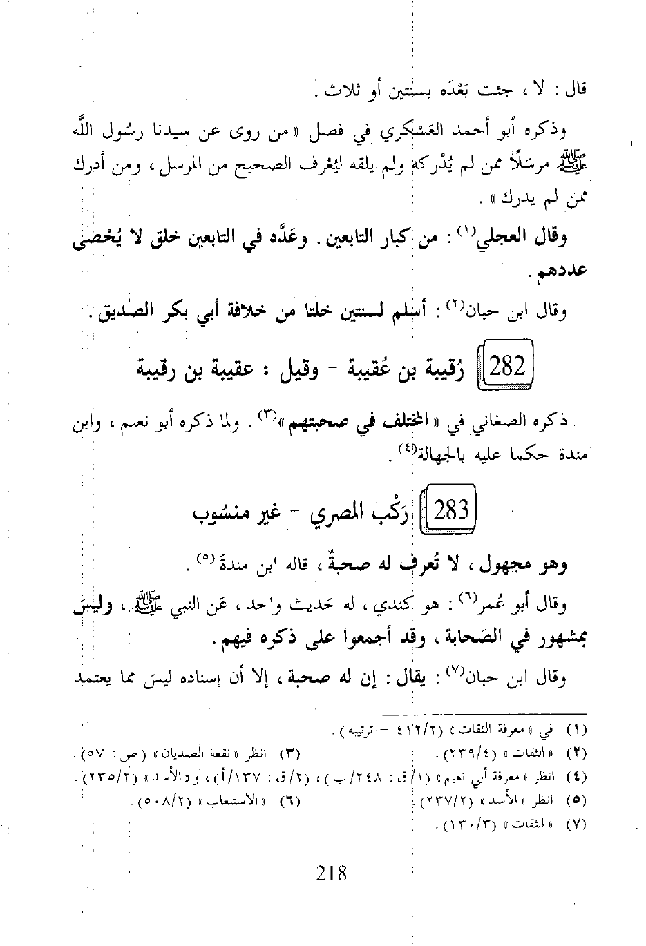٢٨٢ - رُقيبة بن عُقيبة - وقيل: عقيبة بن رقيبة