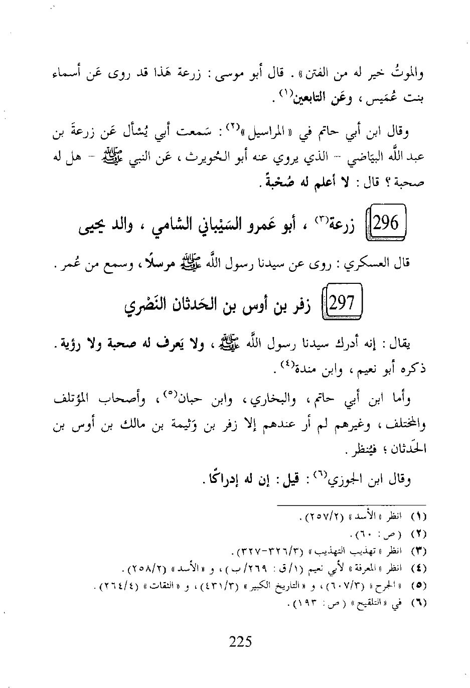 وأما ابن أبي حاتم، والبخاري، وابن حبان (٥)، وأصحاب المؤتلف والمختلف، وغيرهم لم أر عندهم إلا زفر بن وَثيمة بن مالك بن أوس بن الحَدثان؛ فيُنظر.