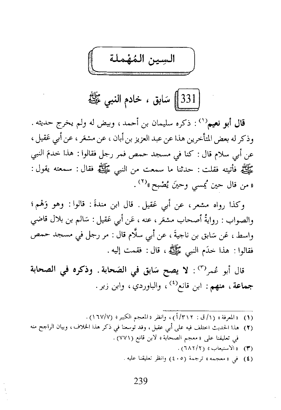 ٣٣١ - سَابق، خادم النبي - صلى الله عليه وسلم -