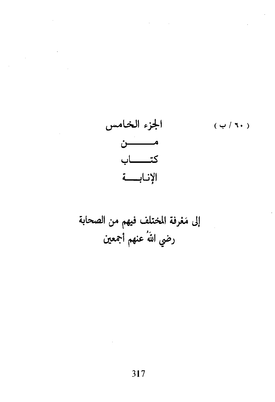 الجزء الخامس من كتاب الإنابة إلى مَعْرفة المختلف فيهم من الصحابة رضي اللهُ عنهم أجمعين