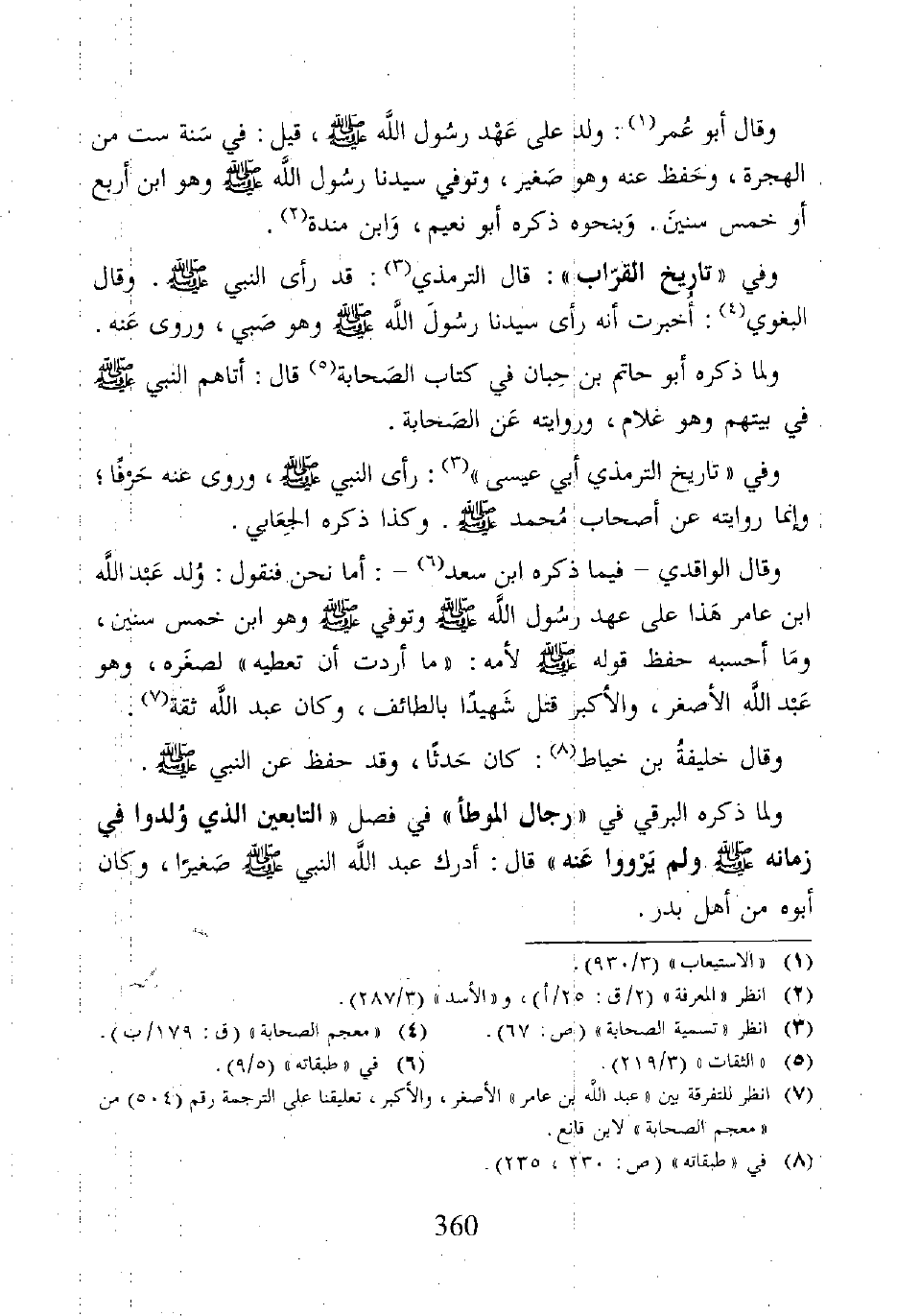 (٧) انظر للتفرقة بين "عبد الله بن عامر" الأصغر، والأكبر، تعليقنا على الترجمة رقم (٥٠٤) من "معجم الصحابة" لابن قانع.