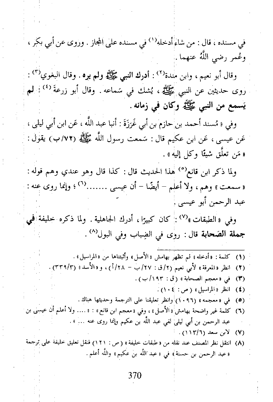 (٨) انتقل نظر المصنف عند نقله من "طبقات خليفة" (ص: ١٢١) فنقل تعليق خليفة على ترجمة "عبد الرحمن بن حسنه" في "عبد الله بن عكيم" والله أعلم.