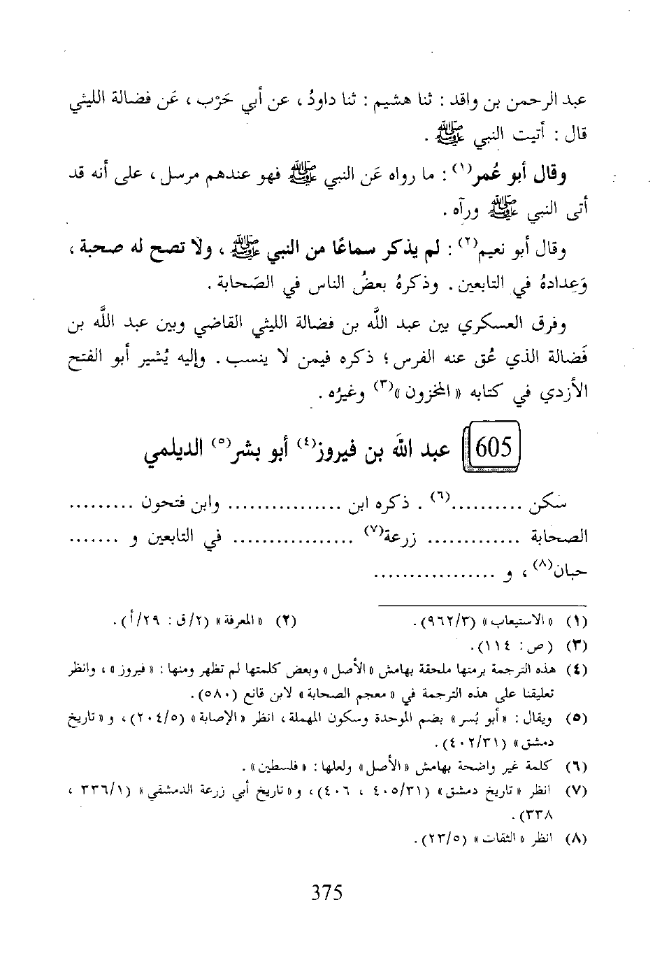 ٦٠٥ - عبد الله بن فيروز (٤) أبو بشر (٥) الديلمي