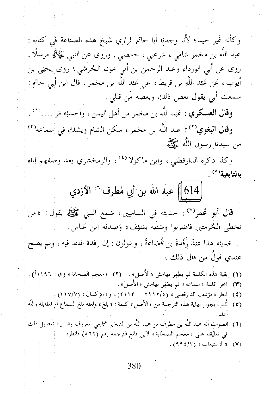 (٦) الصواب أنه عبد الله بن مطرف بن عبد الله بن الشخير التابعي المعروف وقد بينا تفصيل ذلك في تعليقنا على "معجم الصحابة" لابن قانع الترجمة رقم (٥٦٢) فانظره.