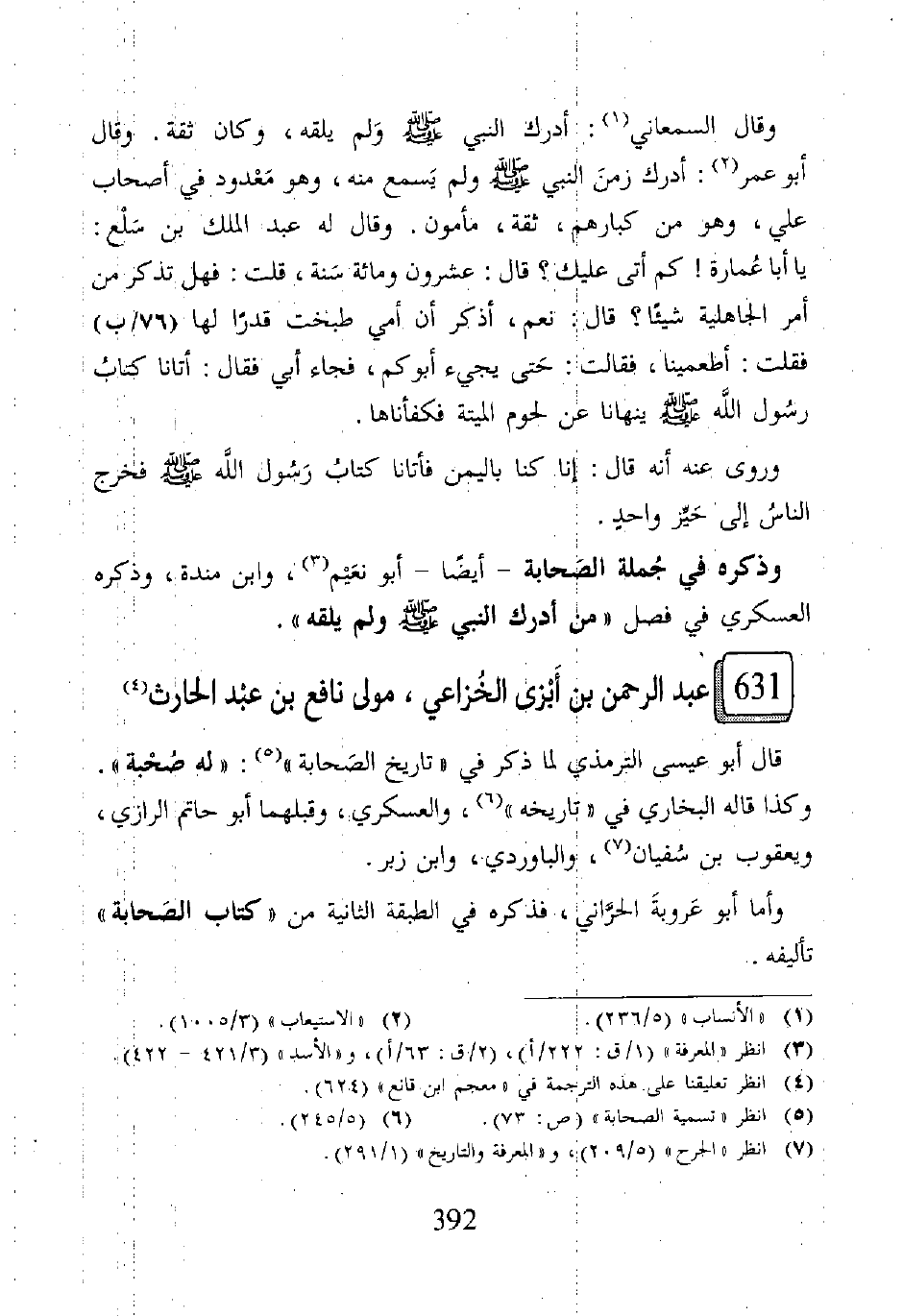 ٦٣١ - عبد الرحمن بن أَبْزى الخُزاعي، مولى نافع بن عبْد الحارث (٤)
