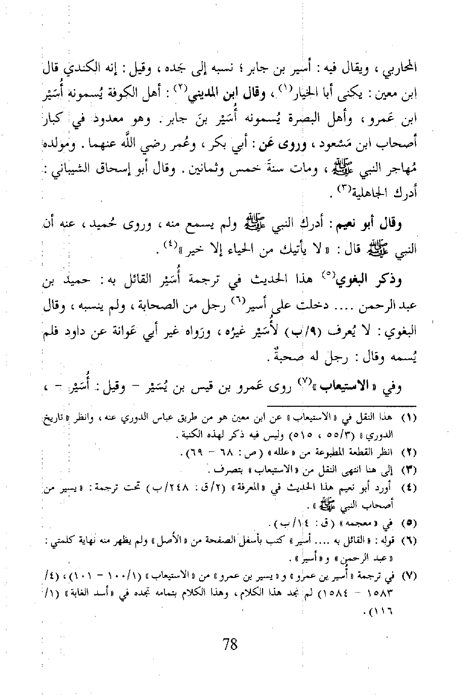 (٧) في ترجمة "أسير بن عمرو" و"يسير بن عمرو" من "الاستيعاب" (١/ ١٠٠ - ١٠١)، (٤/ ١٥٨٣ - ١٥٨٤) لم نجد هذا الكلام، وهذا الكلام بتامه تجده في "أسد الغابة" (١/ ١١٦).