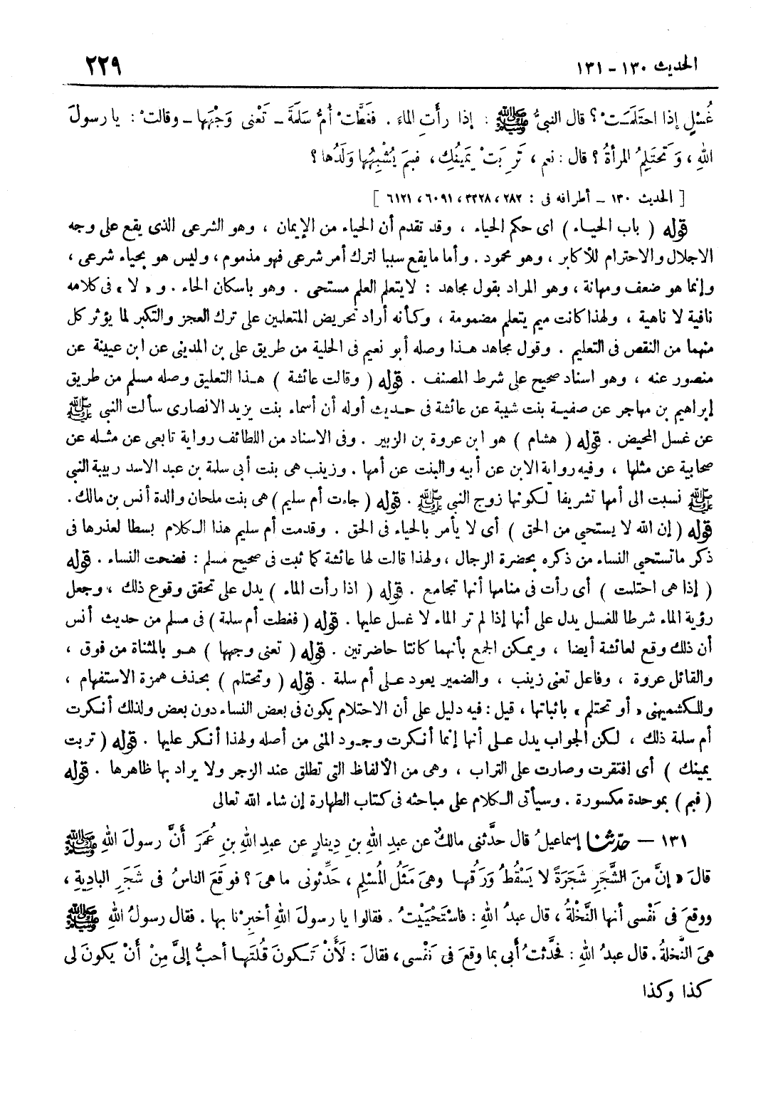 5 - قال الحافظ ابن حجر رحمه الله في الفتح 1/ 229: قوله: "إن الله لا يستحيي من الحق" أي لا يأمر بالحياء في الحق.