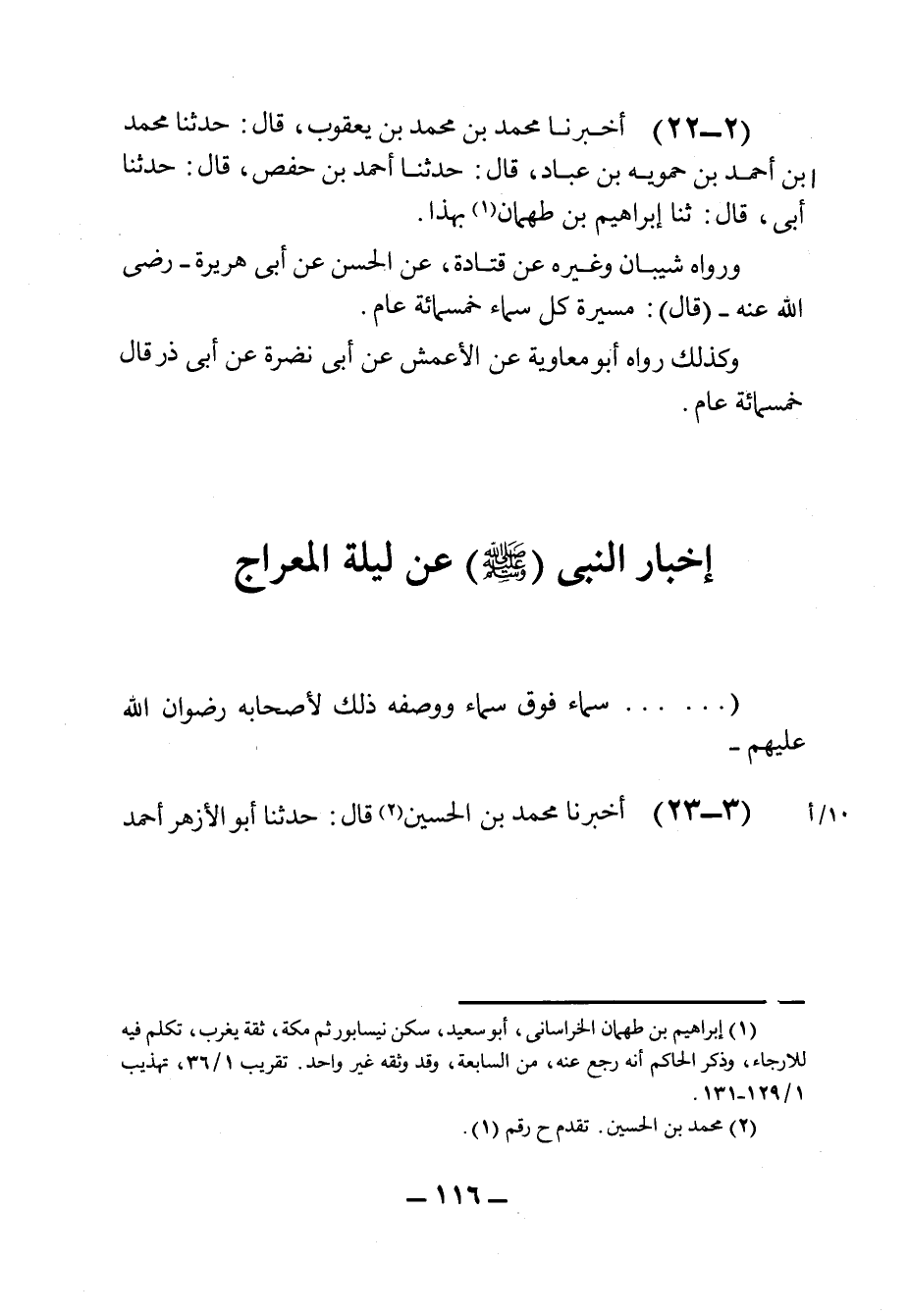٢٢ - أَخْبَرَنَا مُحَمَّدُ بْنُ مُحَمَّدِ بْنِ يَعْقُوبَ، قَالَ: حَدثنا مُحَمَّدُ بْنُ أَحمَد بْنِ حَمُّويَهِ بْنِ عَبَّادٍ، قَالَ: حَدثنا أَحمَدُ بْنُ حَفْصٍ، قَالَ: حَدثنا أَبِي، قَالَ: حَدثنا إِبْرَاهِيمُ بْنُ طَهْمَانَ، بِهَذَا.