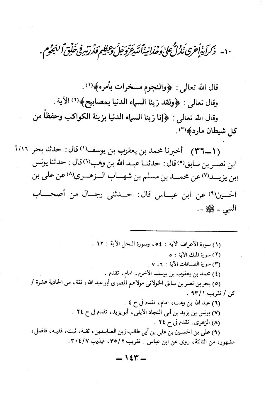 ١٠ - ذِكْرُ آيَةٍ أُخْرَى تَدُلُّ عَلَى وَحْدَانِيَّةِ الله، عَزَّ وَجَلَّ، وَعَظِيمِ قُدْرَتِهِ فِي خَلْقِ النُّجُومِ.