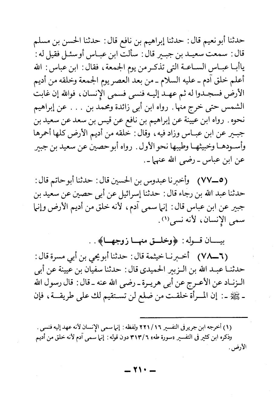 ٧٧ - وَأَخْبَرَنَا عَبْدُوسُ بْنُ الحُسَيْنِ، قَالَ: حَدثنا أَبُو حَاتِمٍ، قَالَ: حَدثنا عَبْدُ الله بْنُ رَجَاءٍ، قَالَ: حَدثنا إِسْرَائِيلُ، عَنْ أَبِي حُصَيْنٍ، عَنْ سَعِيدِ بْنِ جُبَيْرٍ، عَنِ ابْنِ عَبَّاسٍ قَالَ: إِنَّمَا سُمِّيَ آدَمُ، لأنَّهُ خُلِقَ مِنْ أَدِيمِ الأَرْضِ، وَإِنَّمَا سُمِيَ الإِنْسَانَ، لأنَّهُ نَسِيَ.