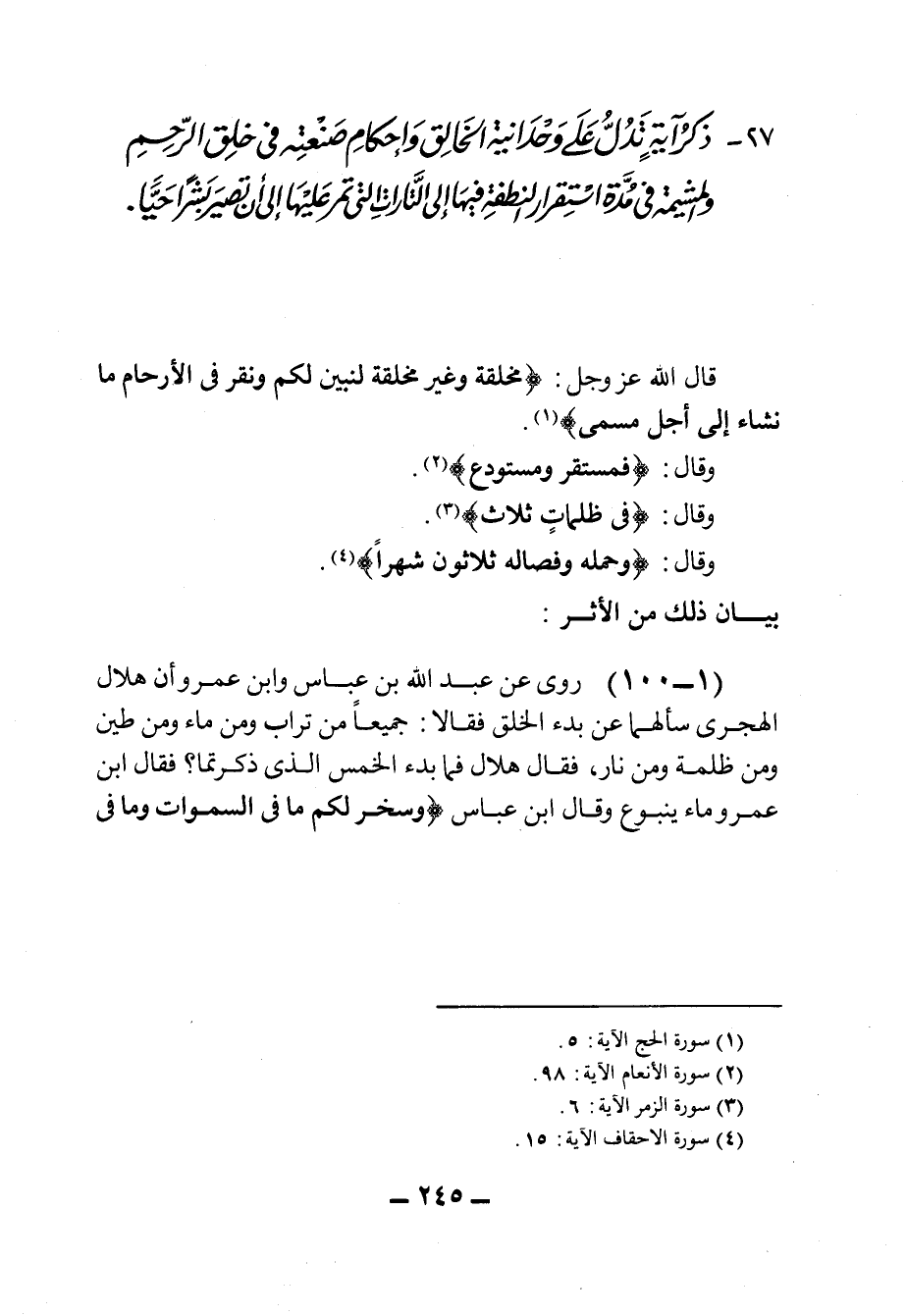 قَالَ الله عَزَّ وَجَلَّ: {مُخَلَّقَةٍ وَغَيْرِ مُخَلَّقَةٍ لِنُبَيِّنَ لكُمْ وَنُقِرُّ فِي الأَرْحَامِ مَا نَشَاءُ إِلَى أَجَلٍ مُسَمًّى}.