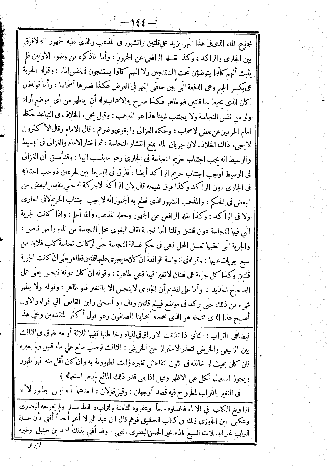 فيضاهى التراب: الثاني إذا تفتتت الاوراق في المياه وخالطتها ففيها ثلاثة أوجه يفرق في الثالث بين الربيعي والخريفى لتعذر الاحتراز عن الخريفي: الثالث لو صب مائع علي ماء قليل ولم يغيره فان كان بحيث لو خالف في اللون لتفاحش تغيره زالت الطهورية به وان كان أقل منه فهو طهور ويجوز استعمال الكل على الاظهر وقيل إذا بقى قدر ذلك المائع لم يجز استعماله) في المتغير بالتراب المطروح فيه قصدا وجهان: وقيل قولان: أحدهما أنه ليس بطهور لانه